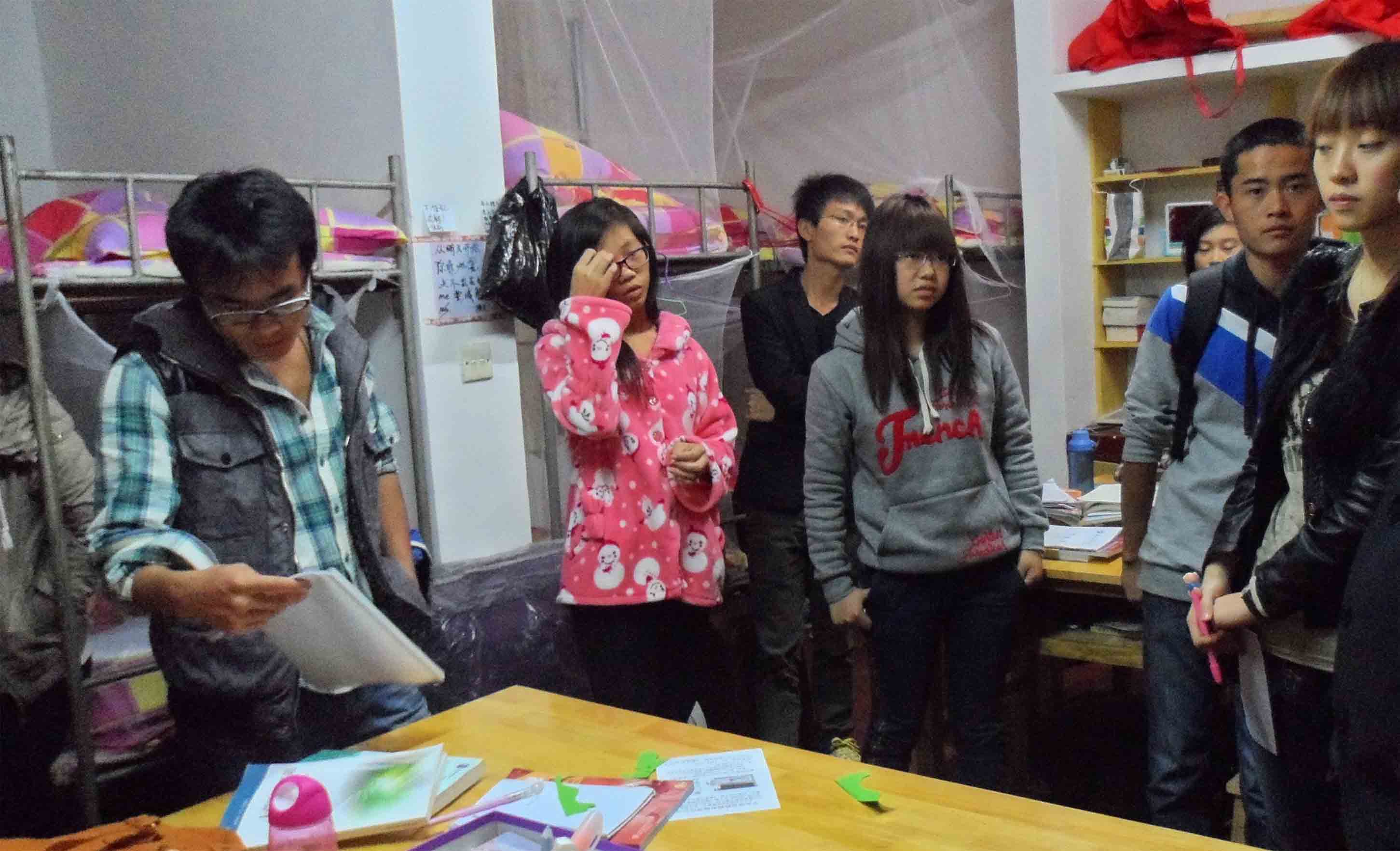 “同学们好,我来看看你们!为防止对你们人身及财产安全造成严重损失,你们千万不要使用像热得快等大功率电器!”在五区新生宿舍内,王书记殷殷嘱咐道。同时,书记老师们也严格的态度对所查宿舍进行安全防火意识进行宣传,告诫大家要注意宿舍的用电安全,防患于未然,并且严厉禁止使用热得快等大功率,对于部分正在使用的宿舍,书记老师们毫不留情的给于没收。其次对于新生,书记老师们也细心一一询问是否习惯公司生活叮咛穿着注意保暖等。