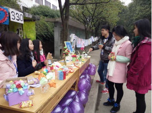 2015年12月15日,在球盟会的电信路口,你的目光定被沿街缤纷的色彩吸引,你的脚步定因展示桌上精心制作的手工艺品放慢。这里正如火如荼地举行着由球盟会纪检宿管部主办的第十届宿舍文化艺术节成果展。组织本次活动的有纪检宿管部部长刘亚琨,副部长冯润、齐静雯,贺婧,以及部分纪检宿管部成员。展览从9:30进行至16:30,展览的物品都是由纪检宿管部从众多宿舍文化艺术节参赛优秀作品中选出来的精品。