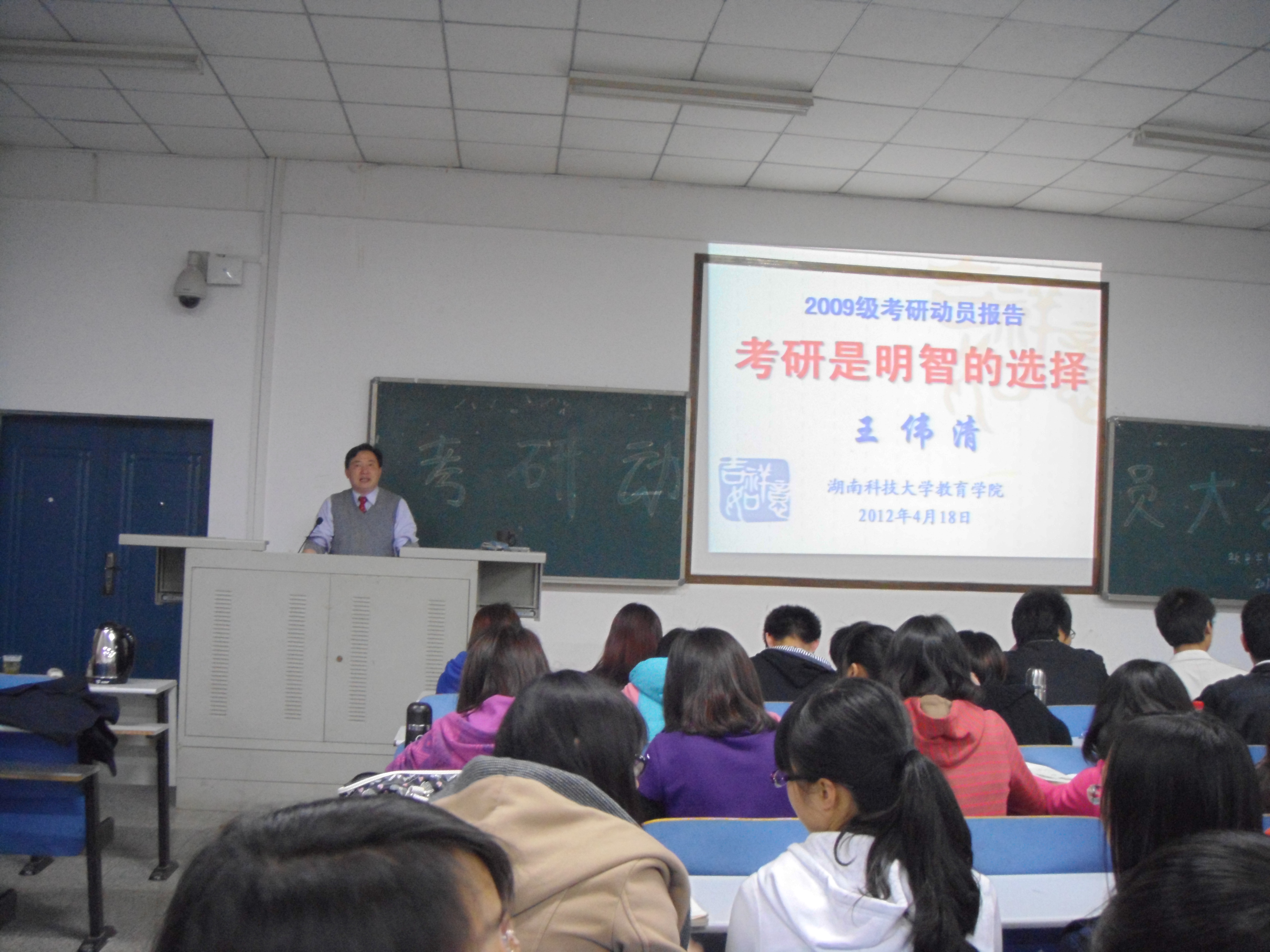 为了让09级的同学们更好地了解考研的形势政策和备考的相关事宜,让考研之行得心应手,4月19日晚19时整,由球盟会学习研究部主办的09级考研动员大会在八教1-3顺利举行,公司党委副书记王伟清出席讲座并作重要讲话。