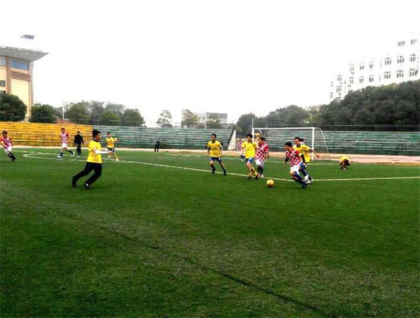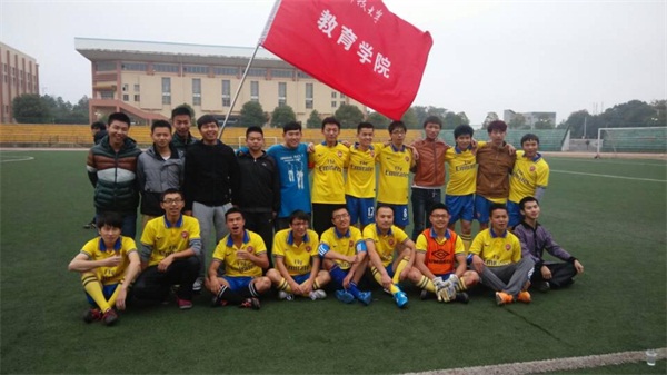 比赛还未开始,队员们个个斗志昂扬,蓄势待发;在场的观众也殷切期盼双方的精彩对决。在一阵欢呼声中,公司队员身着黄色球服,每个人都精神抖擞,帅气登场,他们聚在一起相互鼓励,体现了队员之间的团结友爱。随着裁判的一声哨响,比赛正式开始了。两个队实力相当,僵持不下,外国语队两次射门均被教育队的守门员拦下,上半场进行到一半的时候,外国语队先发制人,踢进了本场比赛的第一个球,给教育队的队员们一个下马威,但教育队也不甘落后,很快也进了球盟会的第一个球,18号队员漂亮的射球赢得了在场所有教院人的欢呼。上半场结束时比分为1:2,球盟会暂时落后。 经过短暂的中场休息后,紧张的下半场的比赛开始了。虽然已经在场上奔跑了这么久了,但队员们仍然斗志昂扬,不显疲态,面对对方的强势进攻,沉着应对。队员们配合也紧密起来,14号队员抓紧时机任意球进球,为球盟会拉近了比分。5号队员和8号队员在比赛过程中不小心受伤,守门员双腿上也受了伤,但每个队员都仍心系着比赛。所有的队员们都在足球场上挥洒着汗水。最后,整场比赛以2:4的比分结束,外国语公司获胜。