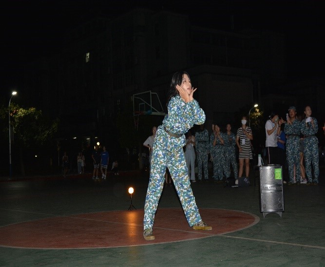 21应用心理学二班林雨欣和李欣怡带来舞蹈串烧《troublemaker》活力满满,再次将气氛点燃;青春健康同伴社的防艾宣讲让同学们掌握了基础的防艾知识,使同学们正确树立的防艾观念;21应用心理学二班邹宇欣倾情献唱《一个》赢得了一致欢呼…新生游戏环节教官们和同学们积极互动,一个个圆圆圈圈是教官与同学的爱的回响。二胡独奏《赛马》是21应用心理学三班邹咏含带来的独家记忆。最后,舞蹈串烧更是将晚会推向高潮,掌声此起彼伏…助班谷文昊和19级教育学陈逸樾带来的歌曲更是惊喜连连,获得同学们阵阵掌声…