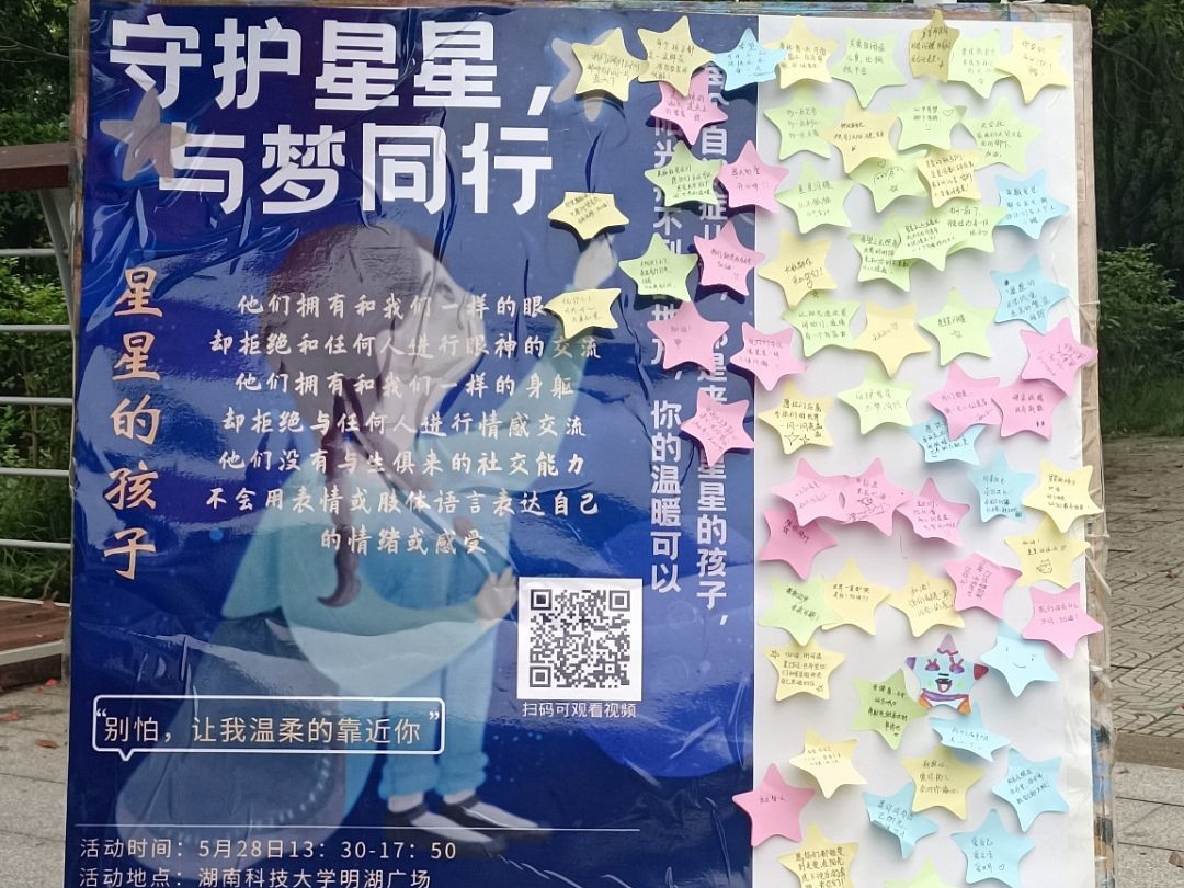 《守护星星的孩子》中曾写道“你独自漂泊在遥远的天际,用纯净的眼睛,注视着茫然而陌生的世界…你们近在咫尺却又相隔万里”。为呼吁大家关注自闭症群体,真正理解自闭症儿童的内心世界,5月28日下午13:30,球盟会青年志愿者分会在明湖广场开展了以“守护星星,与梦同行”为主题的关爱自闭症儿童大型宣传摆点活动,青年志愿者分会的7名会干及18名志愿者参与此次活动。