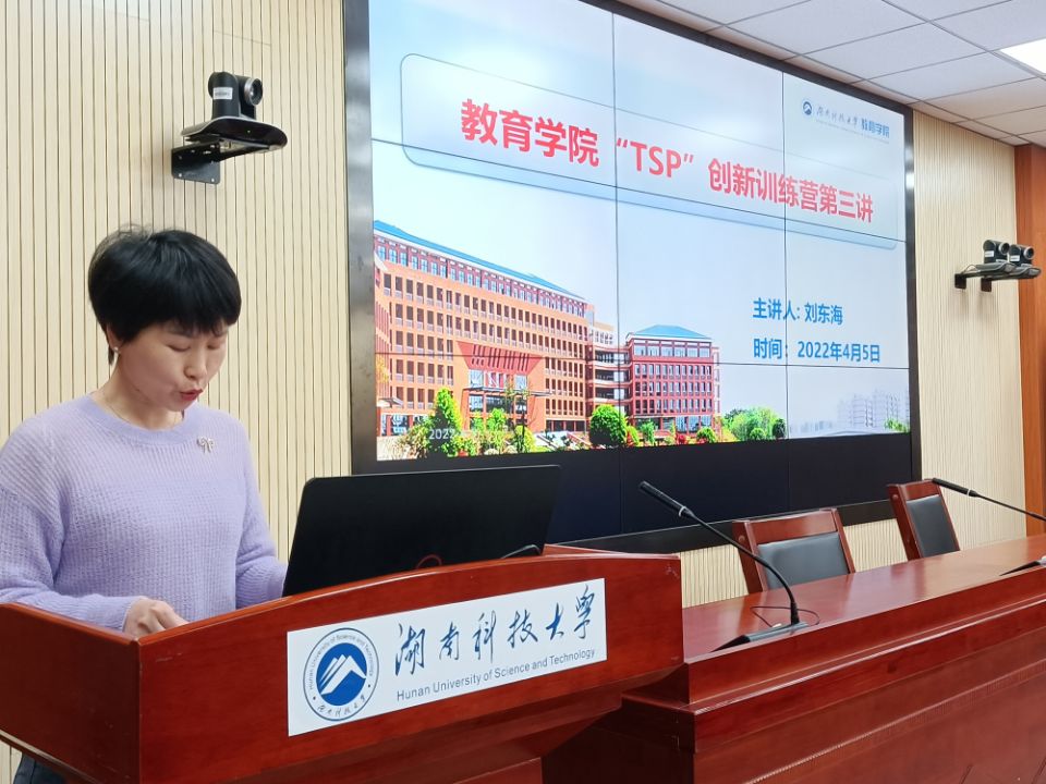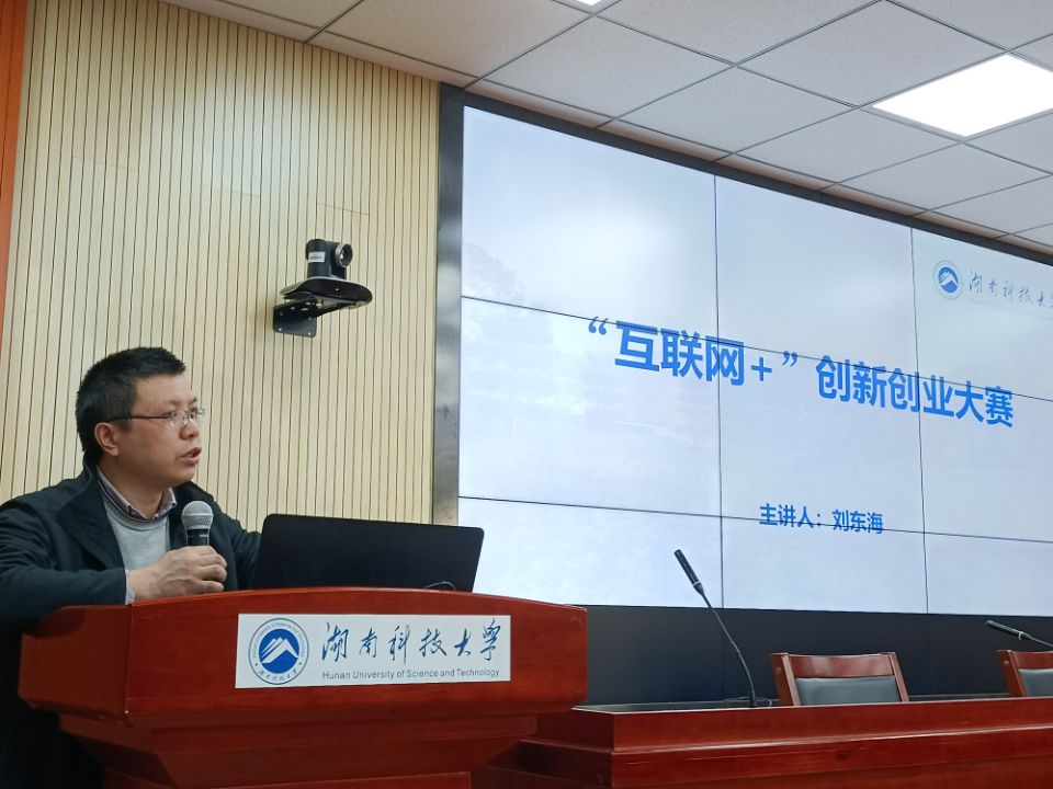 随后,刘东海首先回顾了公司在“互联网+”创新创业大赛所取得的成绩,同时指出公司与湖南其他几所高校相比,在创新创业大赛中的优势与不足。紧接着,他指出了教育类选题的几大范围,如乡村振兴、乡村医疗、助力农业、节能减排等,并强调一个好的项目需要精心打磨、团队配合。之后,他以四个精彩、专业的案例,从项目活动如何有效开展、项目PPT的精良制作以及对未来美好而可行的展望等几个方面一一进行了详细地讲解,在座的同学表示受益匪浅。