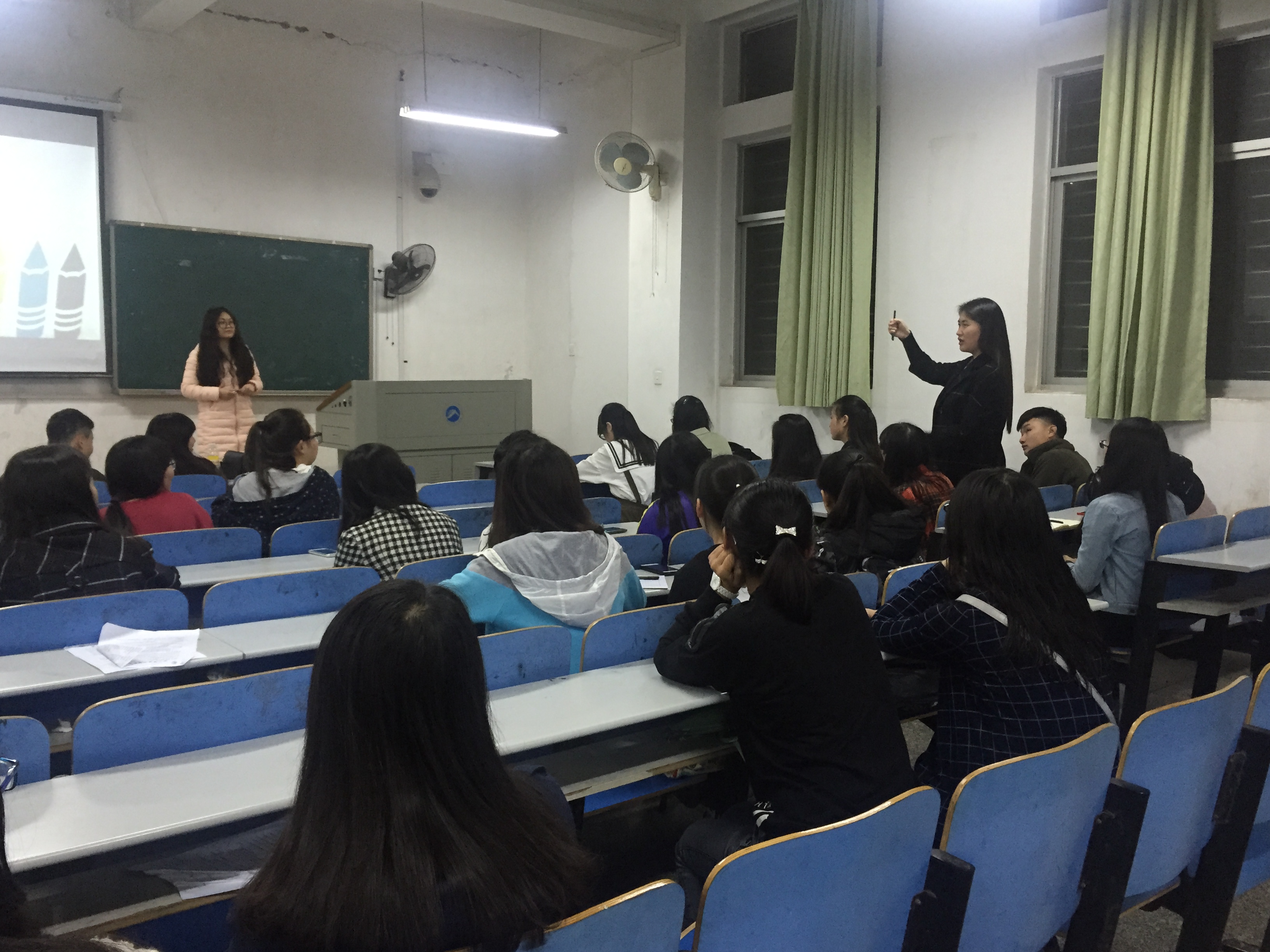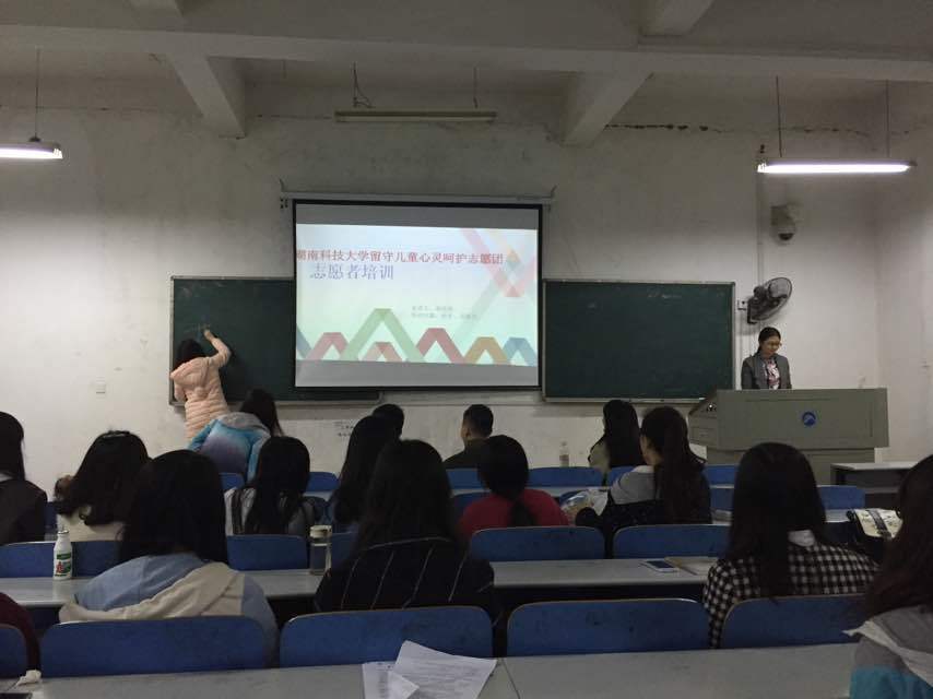 2016年4月8日晚19时,球盟会留守儿童心灵呵护志愿团第二次志愿者主题培训于八教1-6固时开讲,志愿团主要干部和志愿者皆数到场,技术副总监谢佳琼作为培训主讲人针对助手、观察员分类职能进行具体培训说明。
