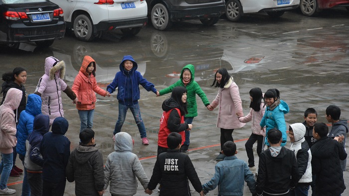 9:20左右双方开始进行合作前情座谈会上,王伟清教授进行前期交流介绍并阐明我们此次志愿活动的目的和任务,以及需要校方配合的具体事项;之后则由校方负责人对在校员工具体情况以及此次参与员工基本情况进行基础介绍。9:45左右技术总监廖文丹同学针对事先布置的调查表进行收集及分发给各主试团训道具;各主试及本组志愿者随班主任到教室与员工见面,由老师简单介绍,主试之间选好各自的组员,则开始正式进入一次性团训的中心环节。团训中通过“爱的抱抱”、“五毛一角”、“有缘相识”等破冰游戏拉近了与孩子们的距离提供契机,并活跃了现场气氛,“解手链”“盲人旅行”这一游戏更是让孩子们体会到了团队协作的重要性。通过观察员场内记录活动线索初步筛选出了疑似重点呵护对象。