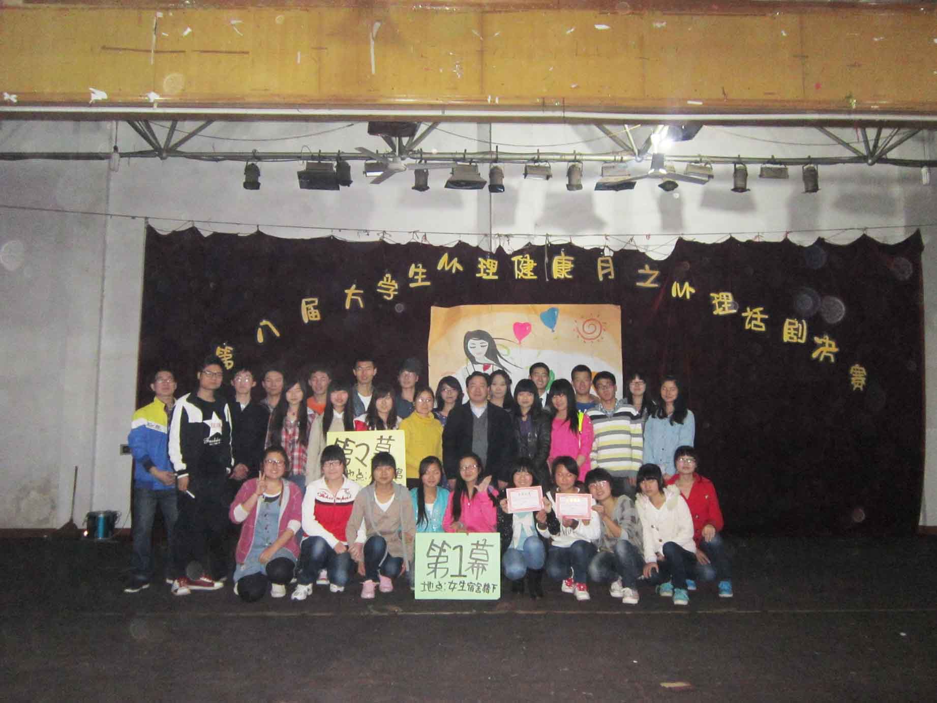 释放心灵,展现自我。在主持人的开场白后,比赛精彩开始。第一个出场的是由12小教3班带来的《心路》,其主题凸显了当今一些老员工嫌贫爱富、攀比、脆弱的心理问题,他们的表演拨动了观众们的心弦,赢得了观众的阵阵喝彩,将赛场的气氛推向了高点。接着由12小教1班出演了《成长》,在压抑的音乐声中,成功的演绎了一个屡屡受挫,心灰意冷之下准备结束生命之时,在身边同学的感化下,最终放弃轻生的念头,重拾信心勇敢走下去的老员工形象。应心3班和应心1班表演的《一直都在》和《眼前阴影,身后阳光》,《一直都在》讲述了一个创业者在一起创业的朋友与女友的不解的双重打击下,内心善良与邪恶展开了一场生死之间的较量。《眼前阴影,身后阳光》演绎的则是一个豁达的独臂画家为离家出走的员工、失意的老总解惑的故事。