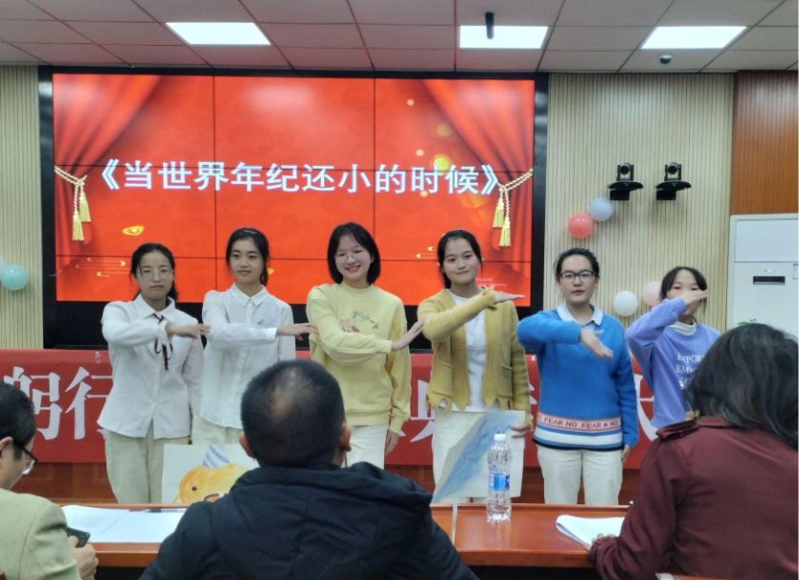 经过一个多小时的角逐,《我的南方和北方》、《当世界年纪还小的时候》获得一等奖,并将代表球盟会参加公司的比赛;《在山的那边》《青春中国》《中国话》《中华少年》获得二等奖;《青春啊青春,你在哪里》《少年中国说》《青春万岁》《永远跟党走》《紫藤萝瀑布》《桂林山水》《写给祖国母亲的歌》获得三等奖。