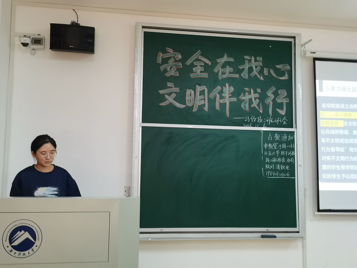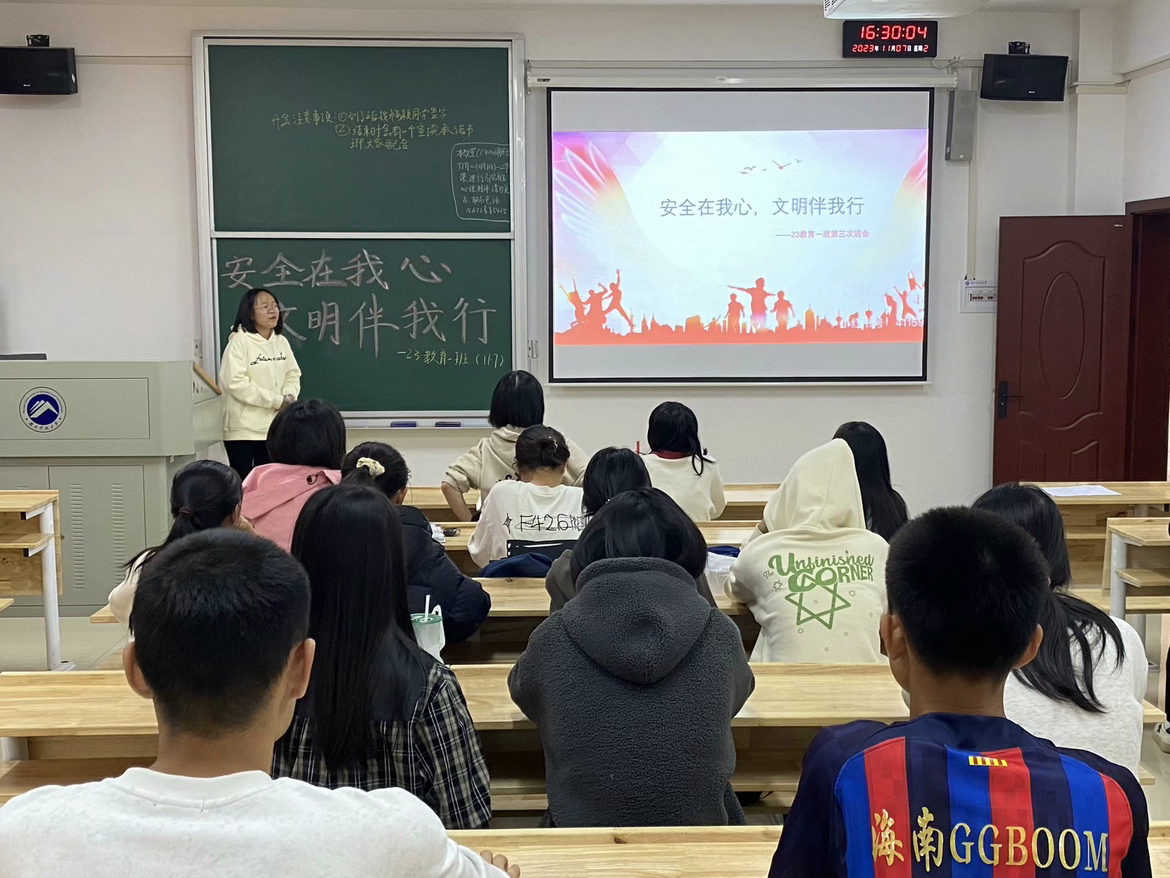球盟会组织本科生“安全在我心,文明伴我行”主题班会