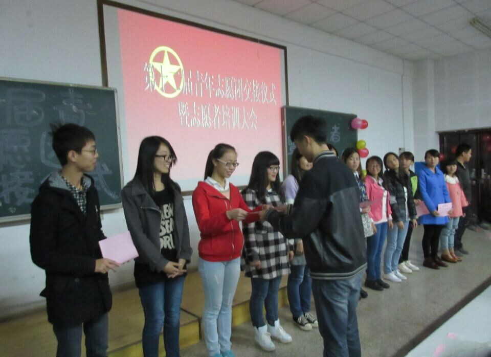 第十二届青年志愿团交接仪式暨培训大会在2014年11月14日晚18:40于八教3-3应时启幕,球盟会团委第一副书记汤思维,第十一届青年志愿团副团长孙生,第十二届青年志愿团团长付少淼及青年志愿团主要干部出席本次大会,一百余位新志愿者及邀场嘉宾团坐着,以共同的身份和语言诠释着新的内涵,连同未来方向。