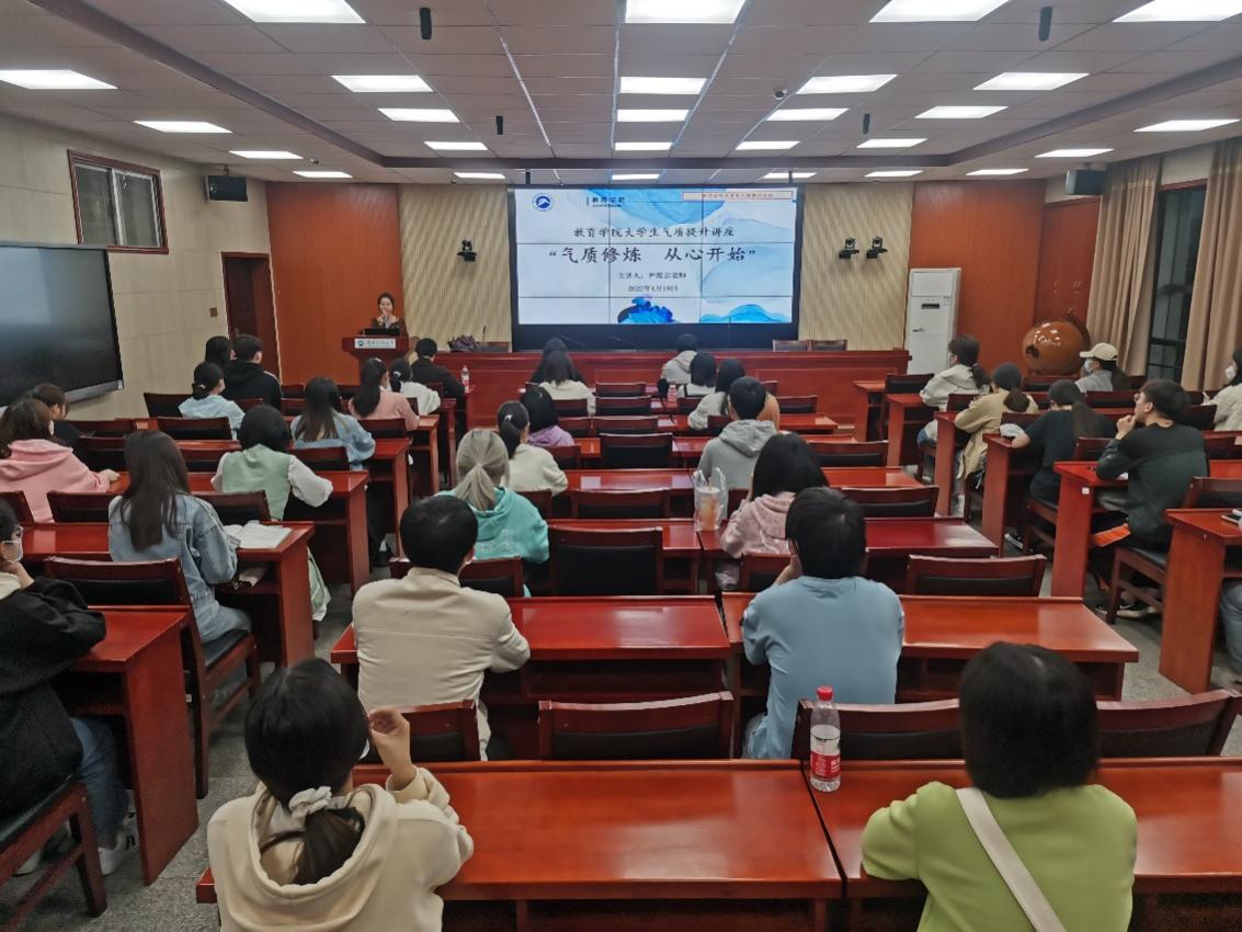 讲座伊始,刘婕进行发言。她讲到,气质是一个综合体,一个人想要有气质,不光要注重外表,更要注重内心的修养。在社交场合中,有一个良好的行为规范极为重要。随后,她向大家隆重介绍主讲嘉宾,并邀请她精彩开讲。