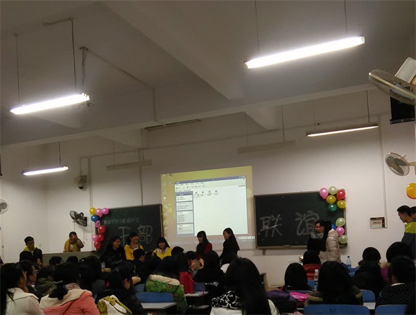 综管部和就业部合作的《甄嬛历险记》惹得每个人捧腹大笑,广告部和外联部的《还珠格格恶搞》使晚会走向高潮,四川方言的皇后娘娘和温柔似水的容嬷嬷还有矫情的紫薇,仿佛陪伴我们度过十几个假期的还珠格格中的演员,走出了电视荧屏来到了现场。《校园版非常勿扰》中,体育部和女生部强强联手,一对对男女用诙谐的语言和夸张的肢体动作演绎了一段校园佳话。音乐剧《你不知道的事》在钢琴的演奏中让资助部与危机部带领我们看了一幕幕青春年少时的过往。之后还有学习部联合员工部的《响水村之音》,网络部和职规部的《不一样的情歌王》,评估部和科活部的《科大公寓》,德育部和宣传部的《当文艺遇上逗比》以及纪检部和文艺部的《走秀+广岛之恋》。下面的观众激动地说:“球盟会的员工会真是卧虎藏龙!”
