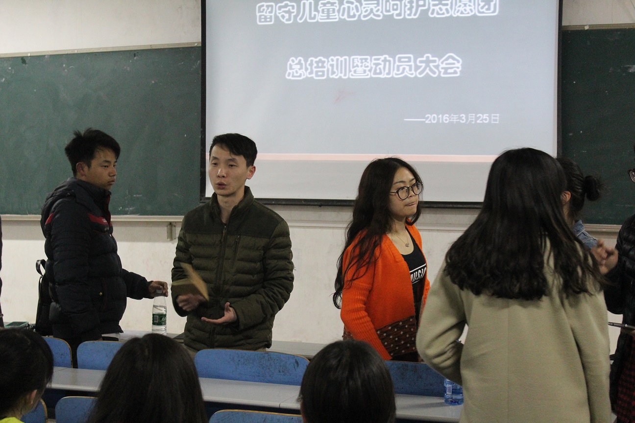 为增强志愿者对团内志愿活动的认识,更好地为日后志愿活动贡献力量,25日19:40留守儿童心灵呵护志愿团于八教1—6举行总培训暨动员大会,帮助新进志愿者了解志愿团历史及主要活动,大会到场嘉宾有志愿团副团长徐春菊、李晓刚、团支书刘一俭、技术总监陈婷、技术副总监谢佳琼。