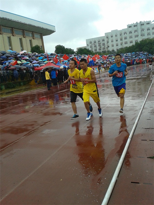 伴随着一声枪响,运动员们像箭一样地冲出去,他们个个身手矫健,志在必得。前三圈,陈佳乐和刘远向一直处于较领先的位置。环形的跑道上,他们一圈又一圈地坚持着, 汗水与雨水一同浸湿了衣衫,但他们依旧咬紧牙关奋力向前奔跑着,把毅力与精神精彩地展现在了在赛场上。值得关注的还有从球盟会的观众席上传来的一阵阵呐喊声与擂鼓声,观众用激情澎湃的声音不断地为参赛选手们加油鼓劲。出席观众席的还有公司党委副书记王伟清教授、辅导员滕茜茜老师以及主席团的成员们,他们也都用自己的热情为教育健儿们加油喝彩。