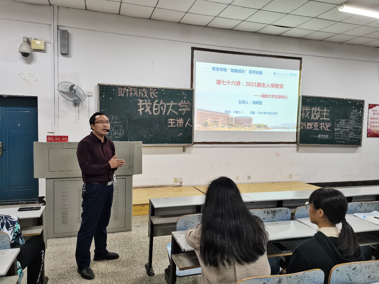 10月29日晚上7:00,“助我成长”第七十七讲——21级入学教育讲座“我的大学我做主“在第八教学楼1-3教室顺利召开。本次讲座由公司党委副书记刘辉亚主讲,21级全体新生参与。