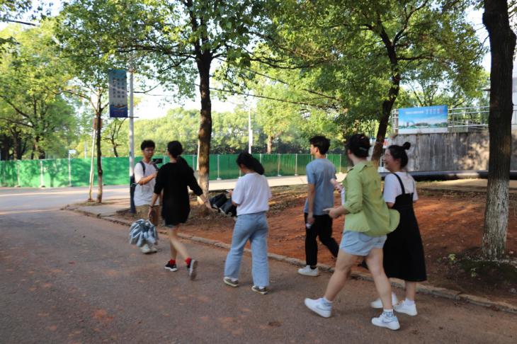 在参观完含笑园后,学风建设部黄雅婷、社团管理部董与佟、广告制作部张慧婷和科技活动部韦泉开始介绍球盟会大本营——第八教学楼。他们带领大家参观了广告制作部、心理健康部等几个比较重要的办公室并讲解了这些办公室的职能,黄雅婷还向大家简单介绍了球盟会的老师们。应新生们的要求,他们带领大家走向了教室,参观员工们学习的地方。之后员工干部们还给大家介绍了北校几个有名的景点,如明湖广场,樱花林以及北校图书馆,张宸堃提到公司曾因有人考试拜孔子像上过微博热搜。镜头绕了一圈后又回到了第八教学楼,并由杨淑雯和田玺如宣布此次直播顺利结束。