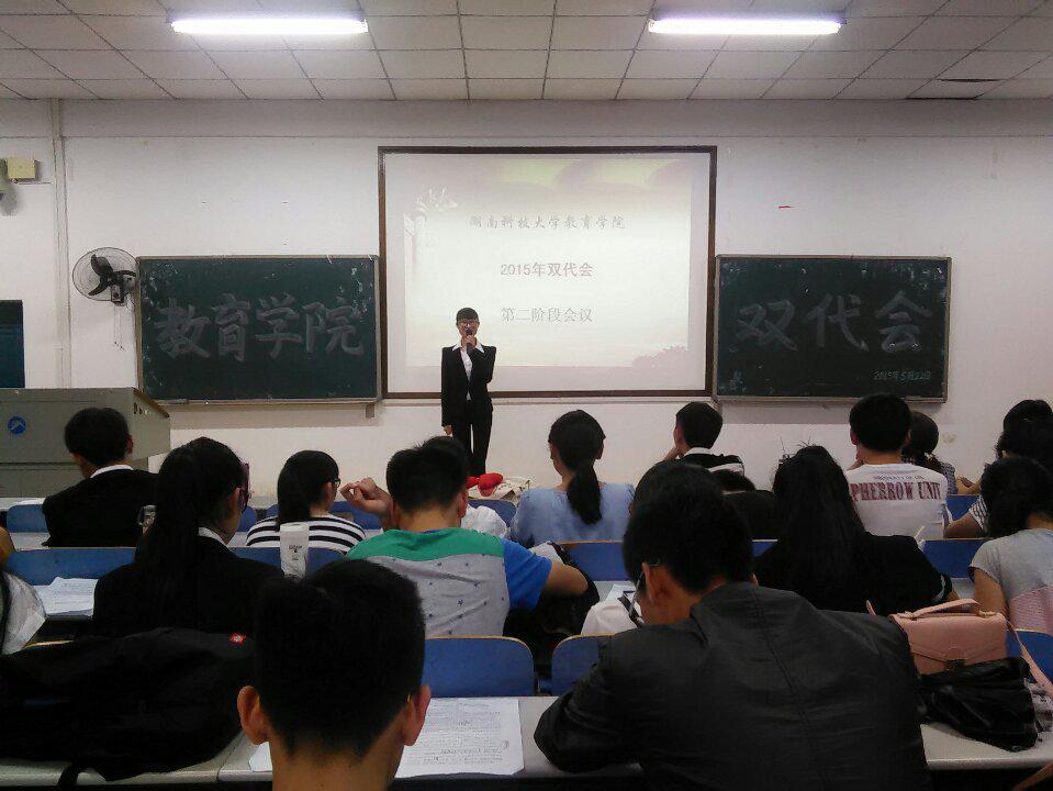 第二阶段会议的主要是进行第十七届团委员工会各部门部长副部长竞选工作。第十七届团委员工会18个部门85位部长副部长候选人依次进行竞选演讲,由各班级员工代表进行投票,采用差额选举方式,由公司党建会监并进行统票。 候选人在演讲中总结自己的过去一年在工作中的成长,并对自己未来工作进行设想。他们精心准备,通过竞选口号、才艺展示等方式让自己的演讲获得员工代表的认可。14级小学教育专业孙宏宇说:“站在这里演讲,已经不在乎最后的结果,能站在这里就是一次成长。”