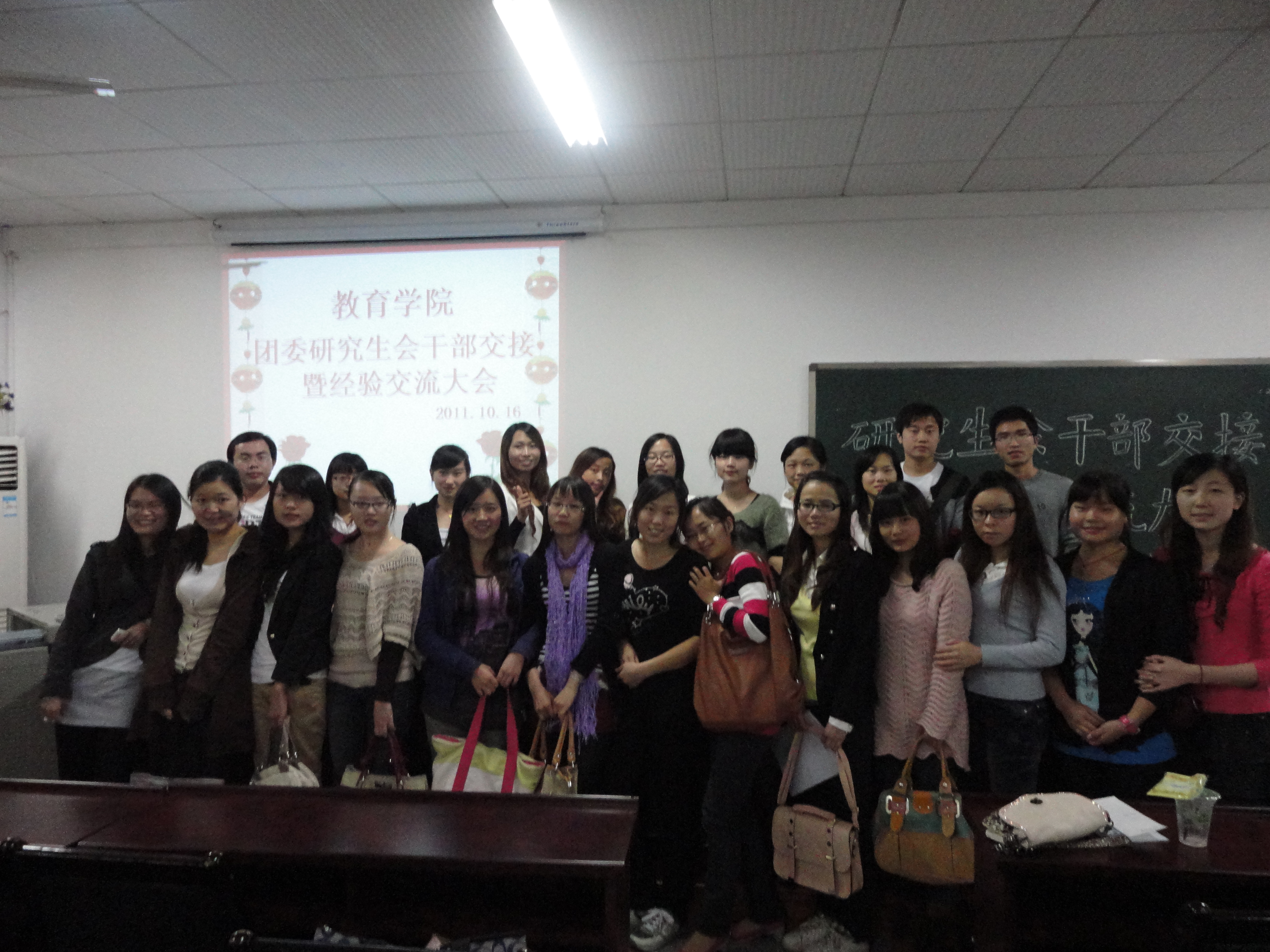 为进一步增强新任员工干部的工作能力,改进工作方法,10月16日晚上7点,球盟会研究生会干部交接暨经验交流大会在八教408成功召开。会议由前院研究生会副主席王江南主持。10级和11级研究生会各部门干部与会。