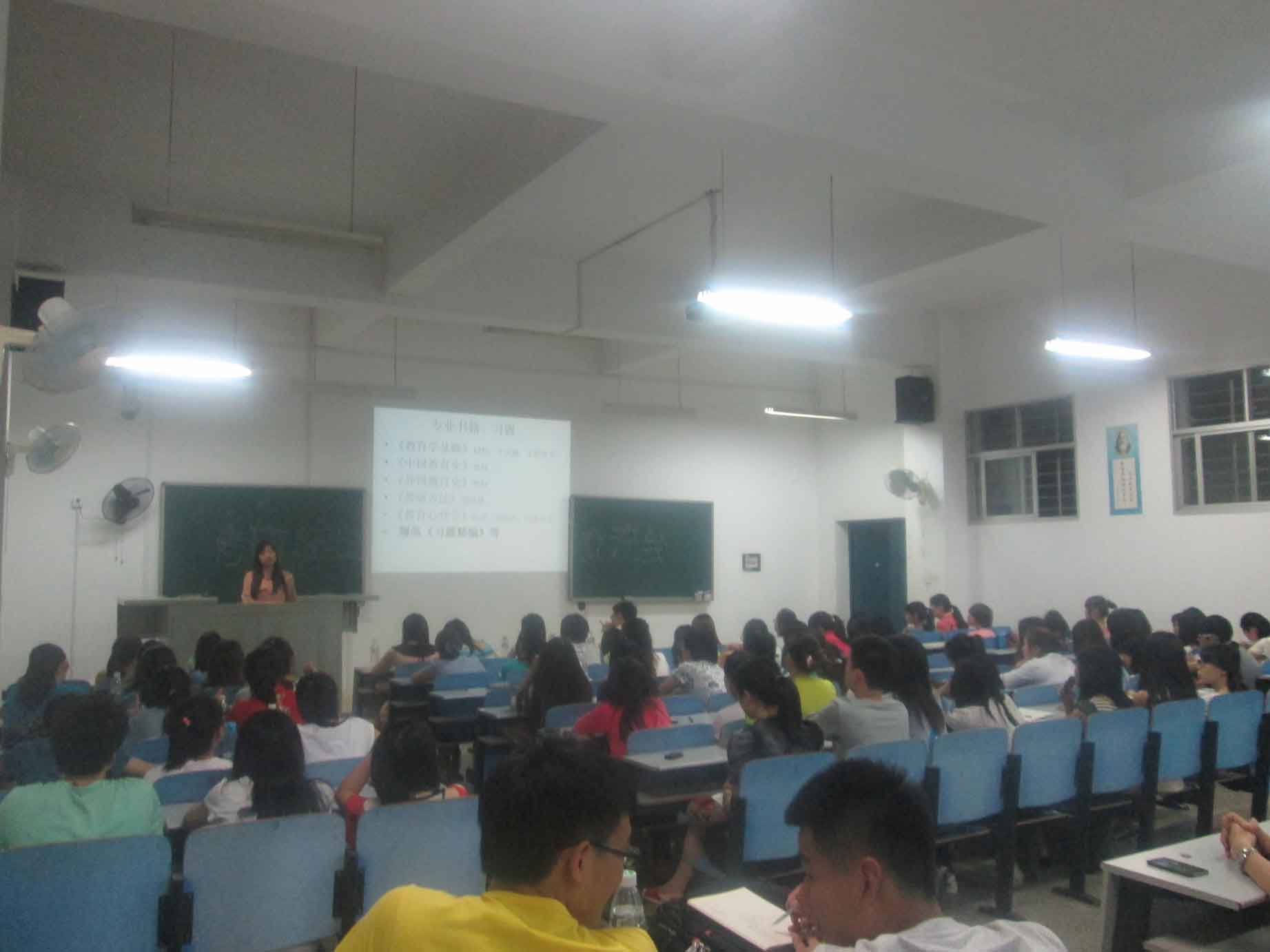 这次交流会邀请了09级的四位主讲嘉宾,他们是教育学专业的彭姗、教技专业的曹旺、小教专业的吴煌和应心专业的何婷婷同学。此次经验交流会就是由这四位嘉宾与即将迈向考研关口的大三学子分享一些经验,以其能为他们在这场没有硝烟的战斗中增加一些胜利筹码。