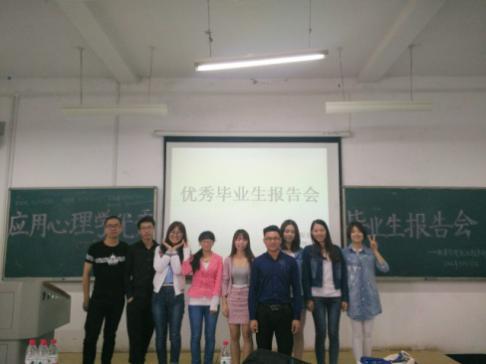 微风驱散雾霾,阳光穿透雨露。2016年5月27日,久雨初晴,球盟会优秀毕业生报告会终场——2012级应用心理学专业优秀毕业生分享会在第八教学楼4-1顺利举行。公司2012级优秀员工代表吴厚涛、苏维维、毛晗婧、林红娟依次为2015级应用心理学专业同学进行了各自的经验分享。员工会副主席刘亚琨、杨柠遥及就业服务部副部长郝显露出席现场。