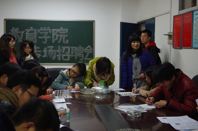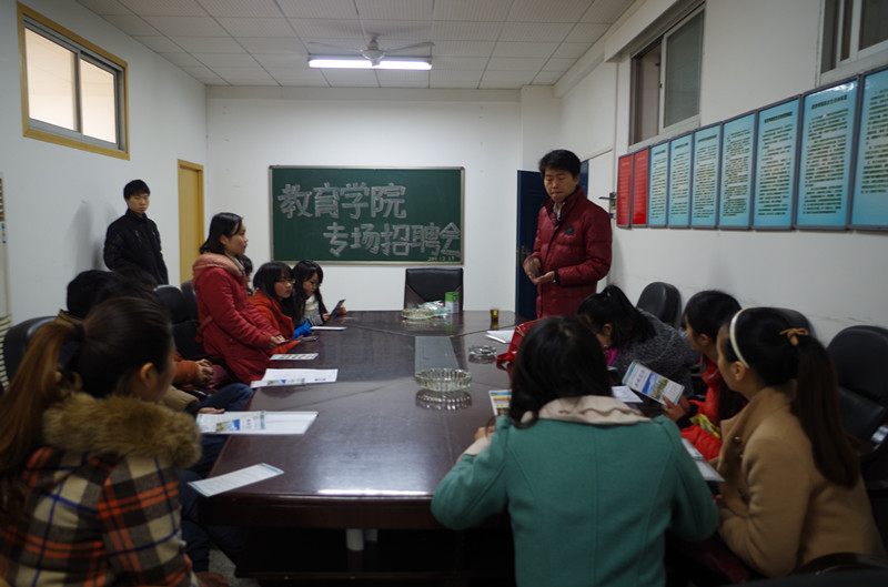 12月27日上午,公司冬季专场招聘会在八教204举行,浏阳市新文公司面向公司四个专业大四员工招聘中小学老师。员工辅导员练素华与公司19名应聘员工参加本次招聘会。