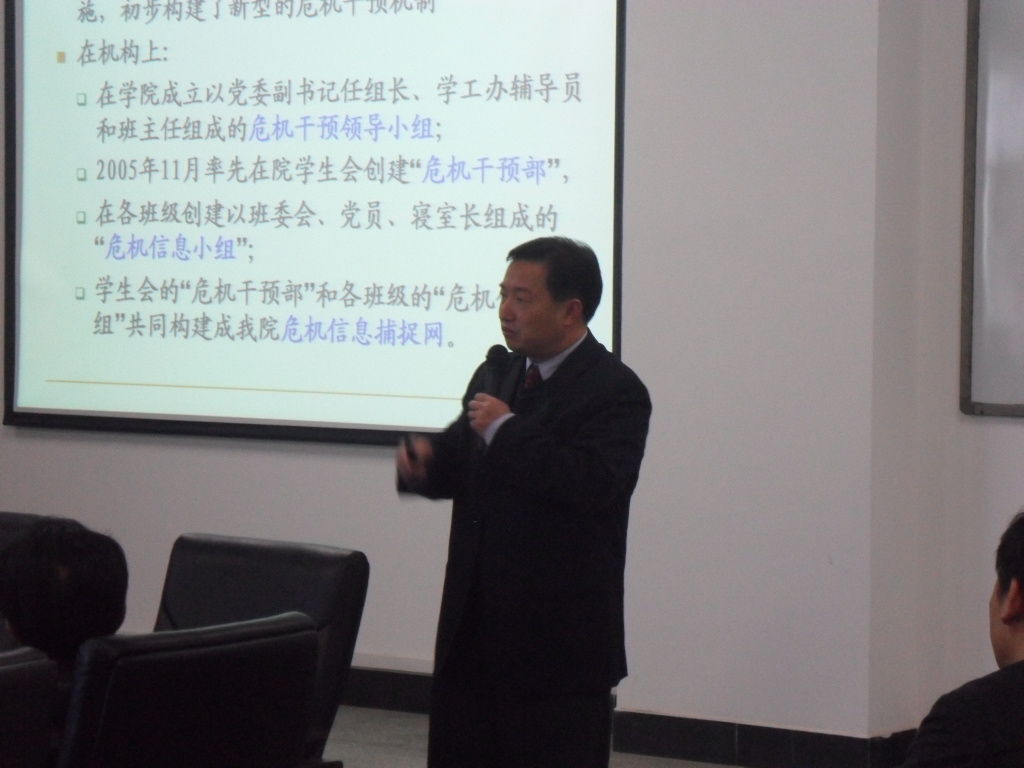 由于最近各大高校屡次发生员工自残自杀事件,引起了社会各界对当前高校员工管理危机事件的深刻反思。王书记在大会上发言说:“这不仅仅是心理健康的问题,而且还包括了人身,财产的安全问题,这更是危机信息的把握不够和工作不到位所导致的。公司为了及时预防此类危机事件的发生,做到防患于未然,将其‘扼杀‘在萌芽期,早在2005年就成立了危机干预机构,注重教育疏导,提高干预效能,注重干预源头。防止危机转化。在危机信息方面做出了成效,对危机事件的处理起到了良好的作用。”