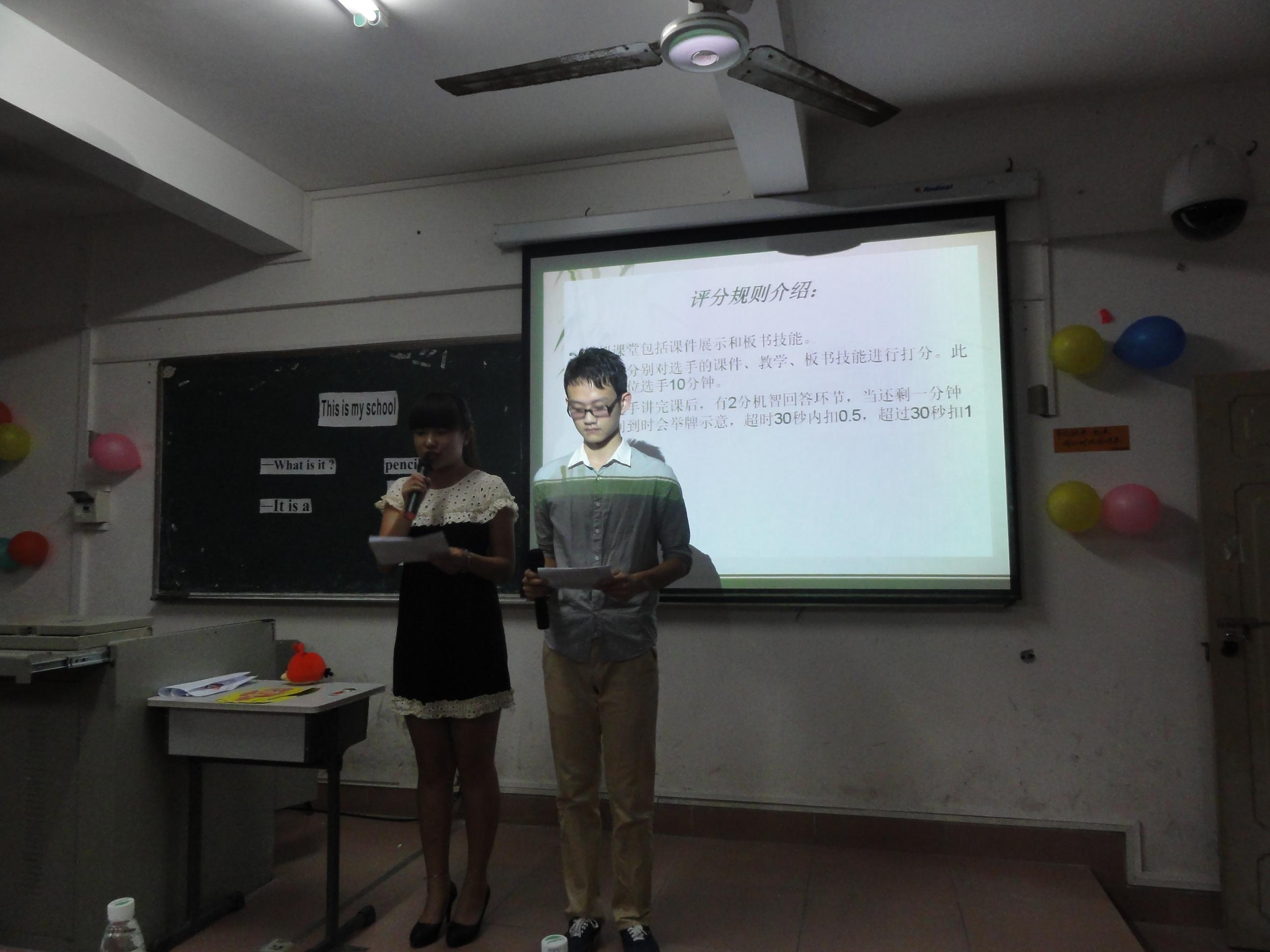 本届教师基本技能大赛由文学创作大赛、教师说课大赛、教师教育课程知识竞赛三个部分组成。经过紧张激烈的初赛和复赛后,共有18名选手及作品脱颖而出,入围决赛。文学创作大赛由参赛选手朗读文学作品,然后评委点评并进行投票。精彩的故事引人入胜,选手们极富特色的个人表现也获得了满堂喝彩。教师说课大赛比赛共分为模拟课堂和情景模拟,选手从六个套题中抽出试题并由演员模拟情景,进行临场发挥,解决课堂上可能出现的问题。在表演中,观众十分配合,选手模拟老师,大家模拟小员工,现场气氛十分热闹。“当教师在评价员工时,不应只是简单的一句‘嗯 ,不错’就算了,而是要引导员工更深入的了解他自己。”刘灿群老师在评价选手讲课技能时说道。 最后进行的教师教育课程知识竞赛,将全场气氛推向了高潮。教育2班对战教技1班,应心3班对战小教2班,双方你问我答,你追我赶,针锋相对,“简直像看辩论赛一样,太精彩啦!”应心3班的何昕同学激动地说。