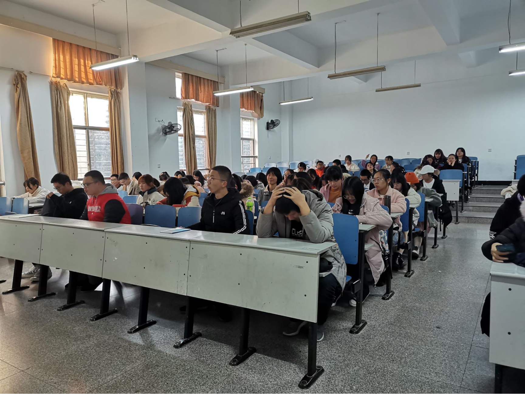 之后尹老师举例强调了坚强、积极、乐观等品质对生命的重要性,呼吁同学们欣赏生命。接着在人际关系、经济状况、学业等方面强调如何保护生命以及抑郁症做了相关知识的普及。