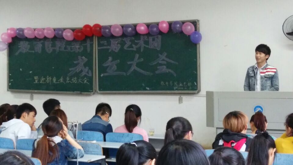 大会伊始,文艺部部长兼艺术团团长陈珊珊作为代表为第十二届艺术团的成立表示了热烈的祝贺并表达了自己的期望。“要让大一的团员有所收获,在这里要开心但不仅仅是玩玩而已,既然来到了艺术团,就要有一份责任心。”紧接着杨佳鑫、李涛老师、十六届团委员工会主席吴厚涛分别给这次成立大会提出希翼,送上祝福。