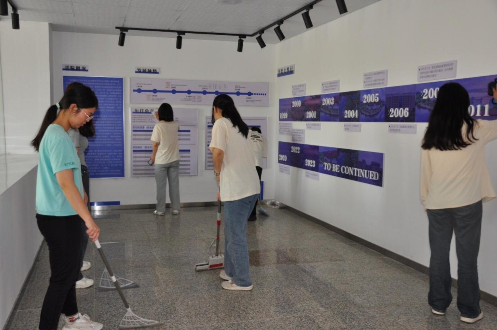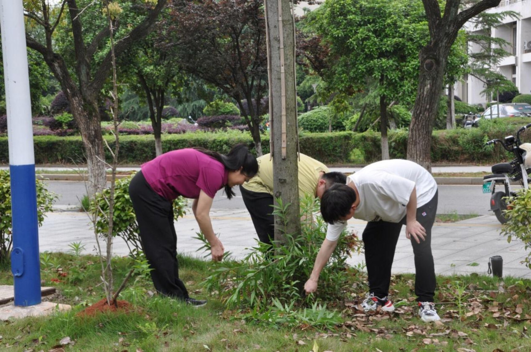 2024年4月23日,球盟会组织员工在敏行楼和柚子园开展劳动实践活动。公司党委副书记文红梅、学工办主任罗江林、辅导员张礼林参与。
