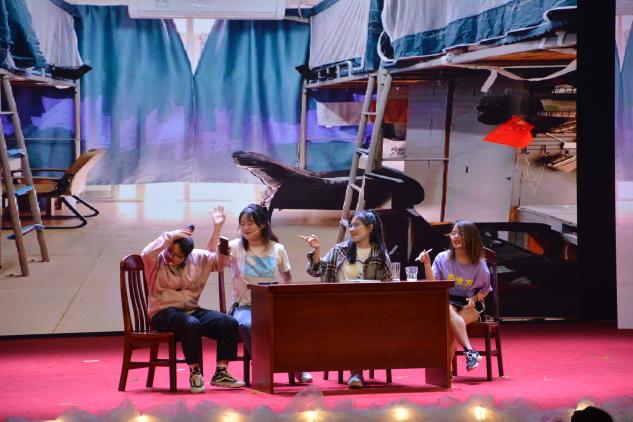 一曲《青鸟》,器乐合奏,其声清澈婉转,令人回味无穷;研究生们带来的歌曲串烧《一起唱过的歌》,将我们的思绪带回同窗共事的历历往事之中。啼笑皆非的小品《青春创造101》带我们走过大学匆匆四年,领略青春的魅力;童心童趣的儿童剧《养鸡场的故事》演绎着莘莘学子追求梦想的天真与果敢、坚毅与浪漫。“百年征程波澜壮,心系梦想砥砺行!”教师朗诵《百年荣光,引领梦想》铿锵有力,热情歌颂中国共产党建党一百周年,丰功伟绩,永记心间。