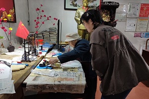 活动快结束时,老年公寓中的志愿者目光停留在一位神采奕奕的奶奶身上。只见她一直全神贯注地画梅花图,走近一看,这幅梅花图栩栩如生、惟妙惟肖。在与她攀谈的过程中得知,原来桌上的毛笔字也是她写的,大家心中的敬佩之情不禁油然而生。志愿者离开之时,奶奶还勉励我们:作为一名老员工,一定要学习红军精神,刻苦攻坚,排除万难,未来就是靠你们这些年轻人了!