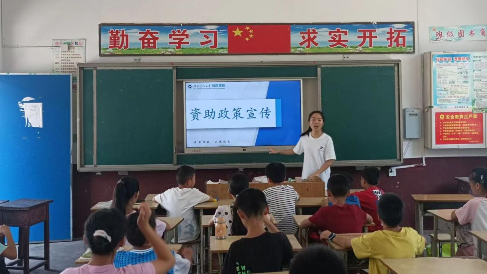 支教队员大力宣传建立健全家庭经济困难员工资助政策体系的重大意义、政策目标、基本原则、主要内容和相关工作要求,让孩子们更加了解资助政策的相关内容。同时通过向孩子们传达社会有关方面和广老员工及家长对湖南省资助政策体系的体会和感受。