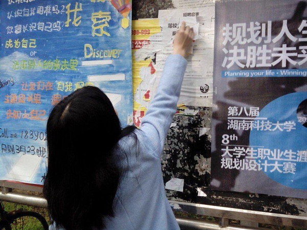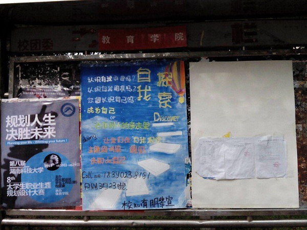 八区的宣传栏也是贴满了小广告