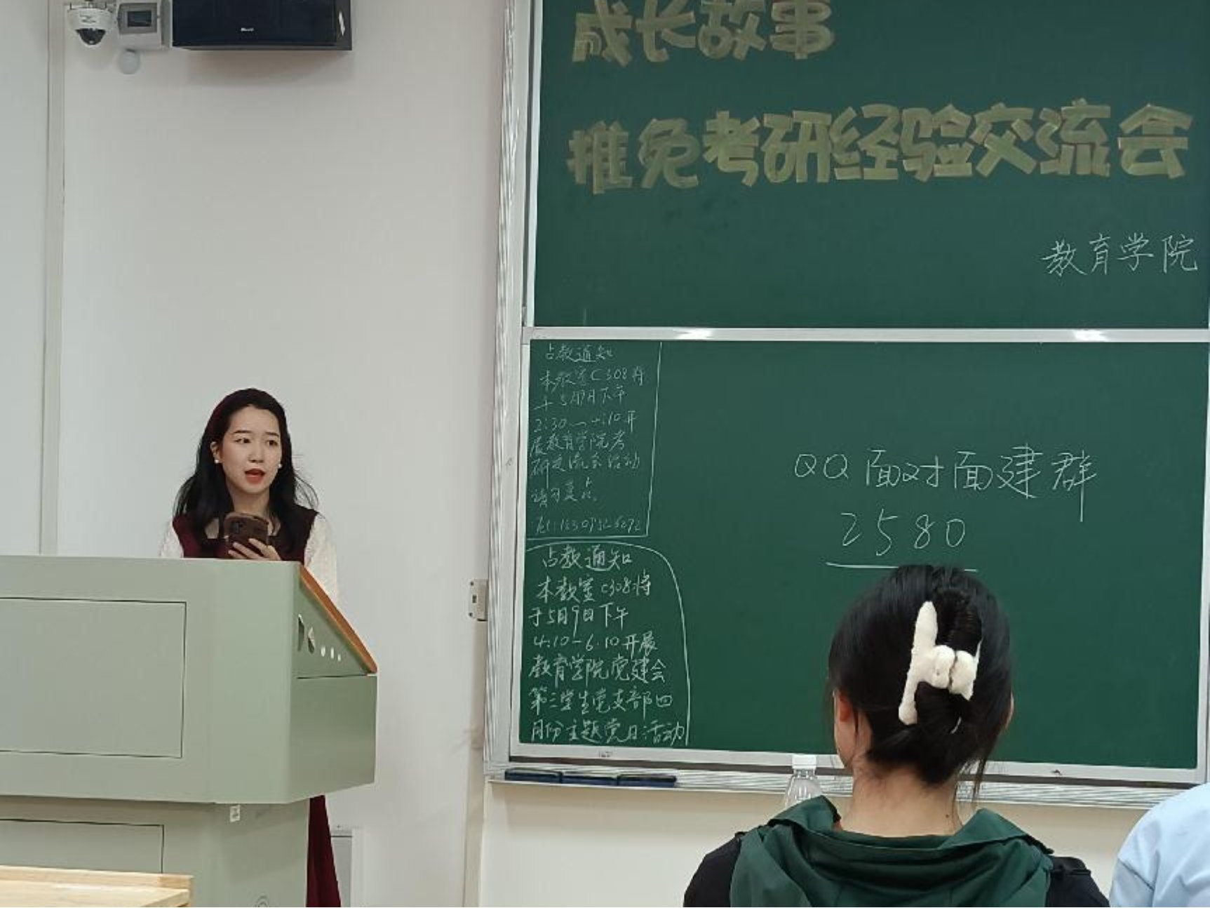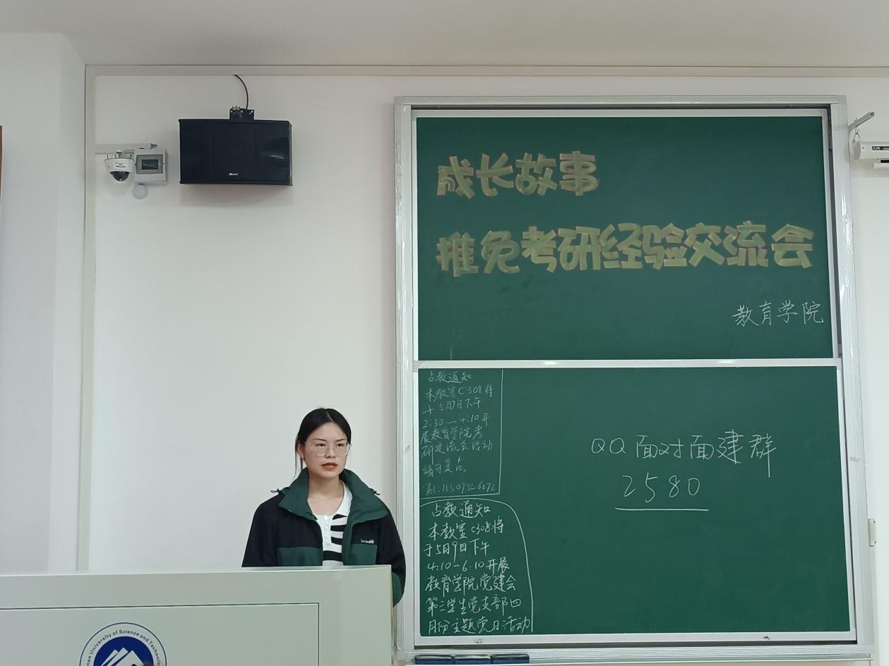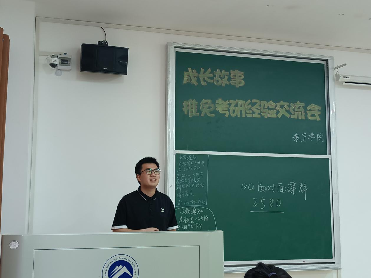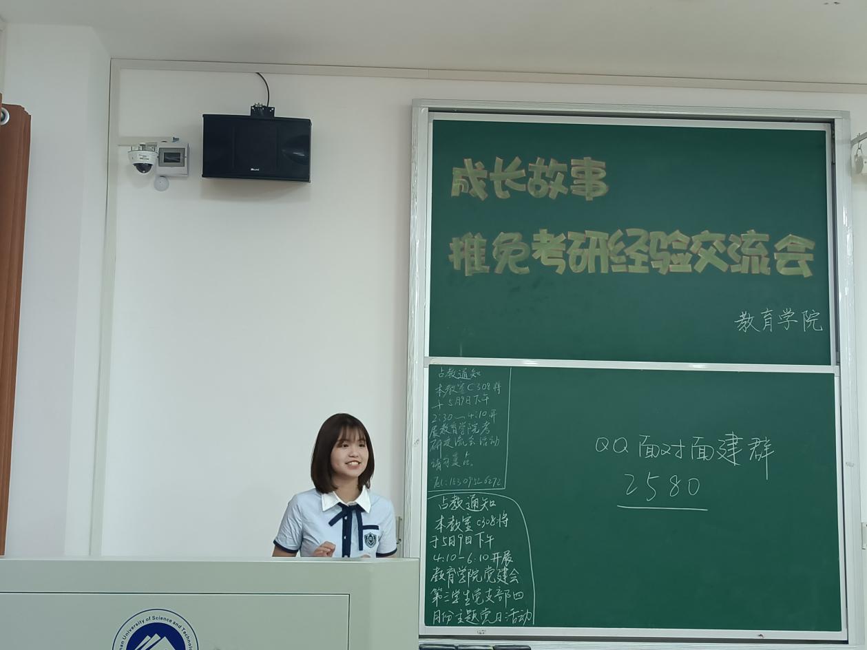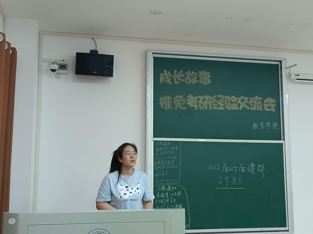 为了让同学们对推免和考研有更多的了解,5月9日,由球盟会学风建设部承办的推免、考研经验交流会在敏行楼c308举行。辅导员练素华、五位毕业生考研代表、 20级员工参加会议。经验交流会由王苏瑞主持。