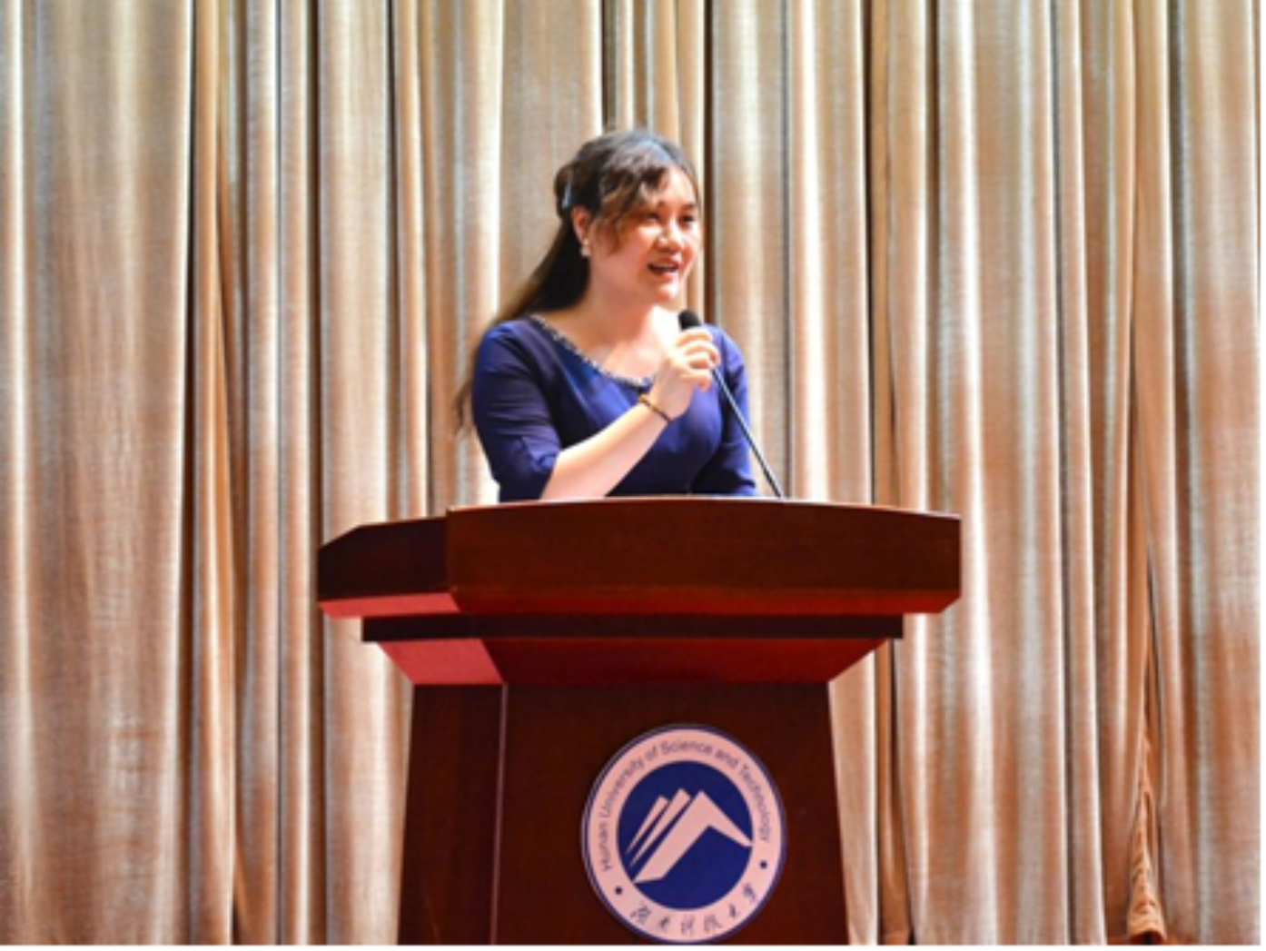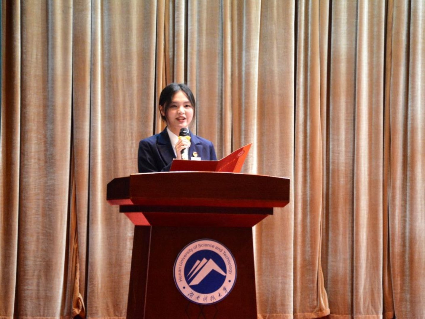 研究生代表沈建婷从四个方面提出了对同学们的希望和建议,“希望每一位同学都要有水的精神,不断积蓄力量,不断冲破障碍,待到时机来临,奔腾入海,成就自己的生命”。