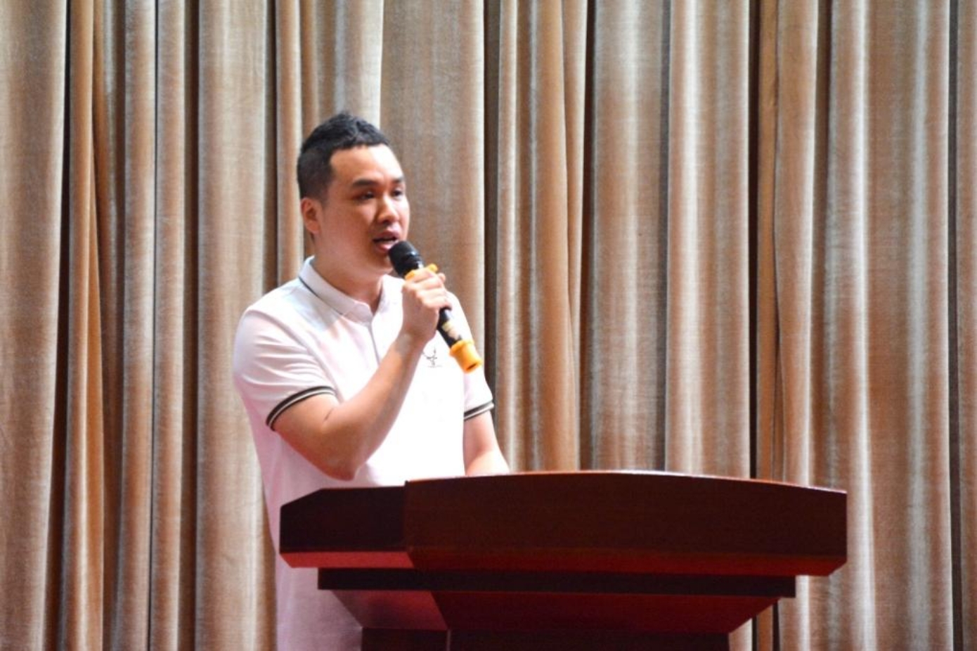 经理谭千保讲话,他指出身为新时代老员工有想法就要积极行动,“知之者不如好之者,好之者不如乐之者”,他强调同学们要好学、乐学,要真正使读书学习成为生活的重要组成部分。