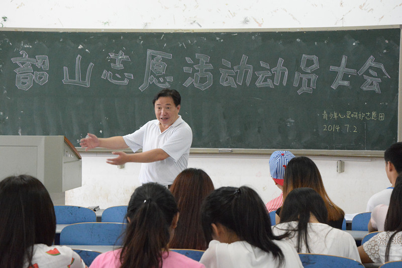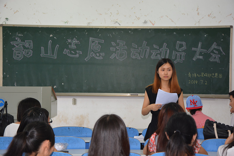 2014年7月2日16:00时许,球盟会青少年心灵呵护志愿团之韶山华润中学青少年儿童心灵呵护志愿活动动员大会,于八教105顺利召开。