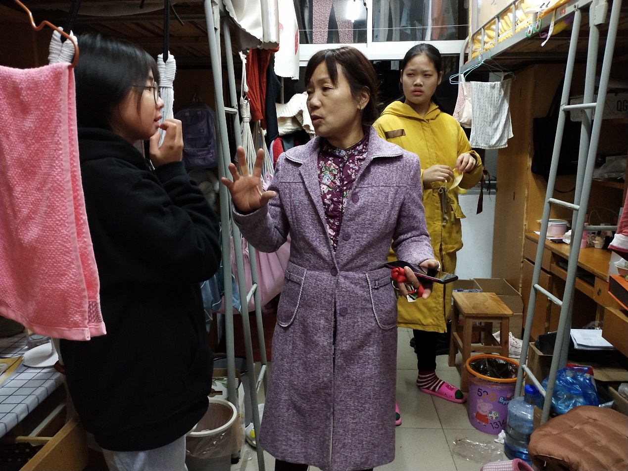 “女孩子宿舍布置得挺好的,很温馨呢”,“最近觉得冷吗?冷的时候可以买那种像鞋套一样的暖脚的。宿舍都是蚊帐棉絮,不要使用明火,就怕这个不小心着火什么的。”在指出同学们的安全问题的同时,老师们也亲切地与同学们进行了交流,话语间尽显温暖与关心。通过本次下寝排查,一方面提高了同学们的安全意识,另一方面也增强了老师和同学们之间的感情,拉近了彼此的距离。