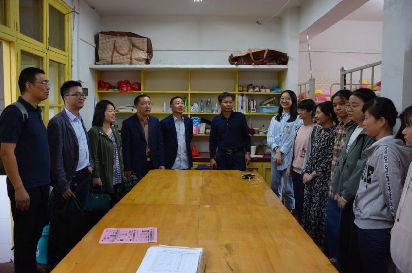 绵绵细雨阻挡不住领导们关切的脚步,9月25日下午3点,为了解新生住宿和生活情况,引导新生尽快适应新环境,公司党委书记李炳煌、党委副书记刘辉亚、副经理陈慧青、副经理陈京军、教育学系主任夏永庚、学工办主任李涛在主席团成员的陪同下走访新生宿舍。