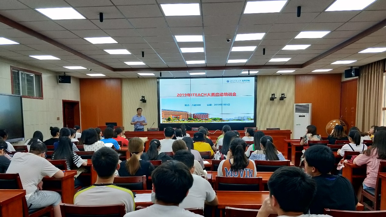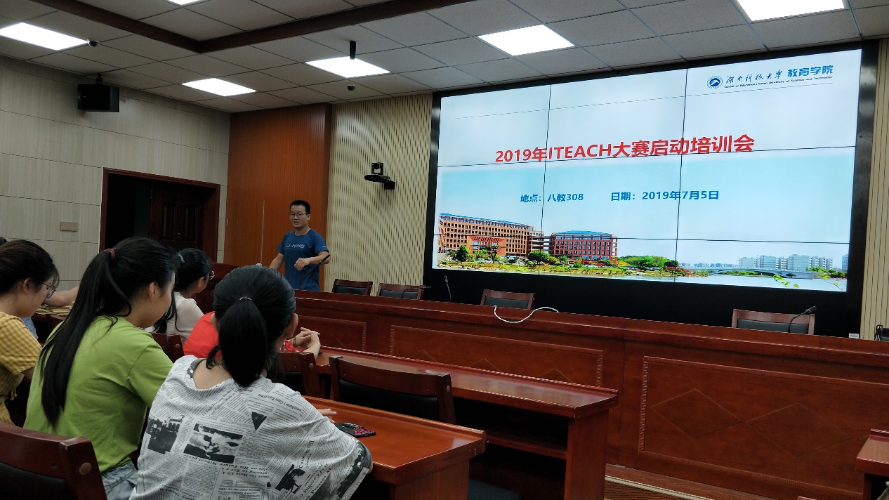 2019年7月5日下午四点半,公司教育信息技术学系师生在第八教学楼308学术报告厅召开“2019年iTeach大赛启动培训会”。会议由张进良老师主持,刘斌老师和蒋玲玲老师出席本次会议,2016级、2017级教育技术学专业本科生到场参会。