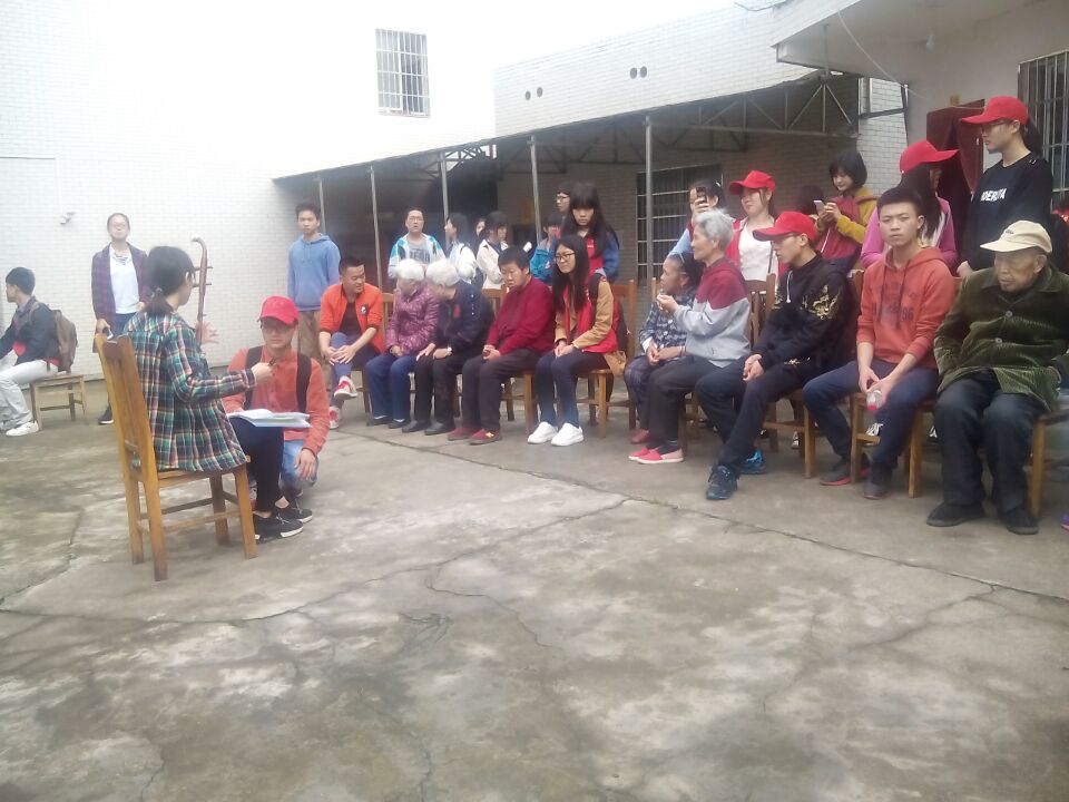 今天早上七点五十集合完毕之后,志愿者们便乘车加步行来到先锋乡老年乐园。来到敬老院才发现,此次的爱心之旅还有球盟会潇湘公司,艺术公司青年志愿团、红十字社团的志愿者。在征得敬老院经理的同意之后,志愿者们纷纷进入敬老院开始志愿活动。因为怕人太多会打扰老人的休息,各公司志愿团负责人一再强调要注意队员和老人的人身安全,注意言谈举止,用礼貌的方式使老人们身心愉悦,让他们感受到温暖。活动中,志愿者们陪老人聊天,拉二胡,下棋等,还帮助老人打扫房。9:20左右,开始表演节目。球盟会负责场外表演,对于一些腿脚不方便的老人,红十字社团的志愿者为老人进行室内节目表演或遵循老人的意愿,陪他们聊聊天就好。经过这段时间的排练,球盟会志愿团共有十三个节目新鲜出炉。有集体舞《青春修炼手册》和《小苹果》、《还珠格格》经典台词串烧、《经典歌曲串烧》,还有各种合唱或独唱歌曲,如《女驸马》、《一个像夏天,一个像冬天》《夫妻双双把家还》等。志愿者们嘹亮的歌声,搞笑的小品给老人们带来了开心的笑容。在表演《还珠格格》时,因为演得太逼真,引得一位老人频频喊表演就表演,不要打人,引得众人哭笑不得,只怪球盟会的志愿者们演技太好啦。