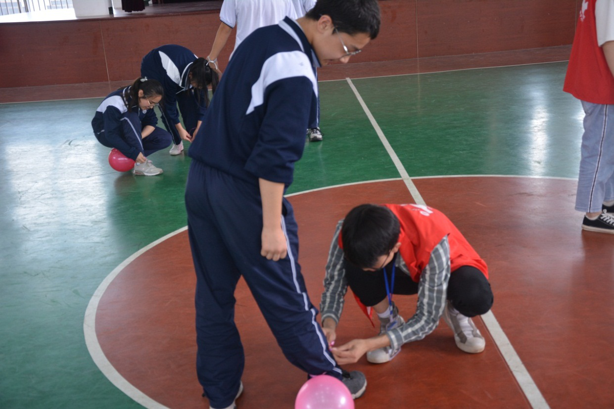 会议结束后,志愿者们迅速整队并拿到相应需要道具,分组跟随班主任老师到教室与同学们见面,经过简单的介绍后,便开始一次性团辅活动。活动通过各种游戏让同学们完成破冰、了解彼此和提高团队协作能力。在团训中,每个小组的观察员都认真仔细的观察每个同学在活动中的表现来发现问题,并依此筛选出疑似重点呵护对象。