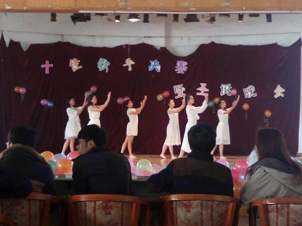 平安夜,圣诞节已经过去,但欢愉的气氛仍在持续,2015年12月26日14时,在北校活动中心正在进行着让耳朵“怀孕”的“十佳歌手决赛暨元旦晚会”。到场嘉宾有第十一届艺术团团长杨佳鑫、副团长王琦;第十二届艺术团团长陈珊珊、副团长刘瑛琦、刘晴;第十三届声乐组组长李航程、朱祉璇及现任文艺部部长王玉和十七届团一副徐春菊等人。
