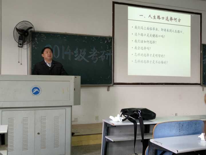 随后,王伟清书记给大家分析了考研的必要性:当前社会就业形势严峻,文凭价值越来越低,而人才的需求量越来越高。考研读研,学习深造,也就成了强化自我、提高就业成功率的奠基石。书记还给大家列出了国家中长期教育改革和发展规划纲要中教育事业发展与人力资源开发的主要目标,为大家具体指出了2014级同学面临的现实问题,通过准确可靠的数据让长期处在象牙塔中的老员工认识到“外面的世界很无奈”。王伟清教授结合国家长期教育改革和发展规划纲要对教师队伍进行解读,深入分析了学历在漫漫人生道路中的重要性。