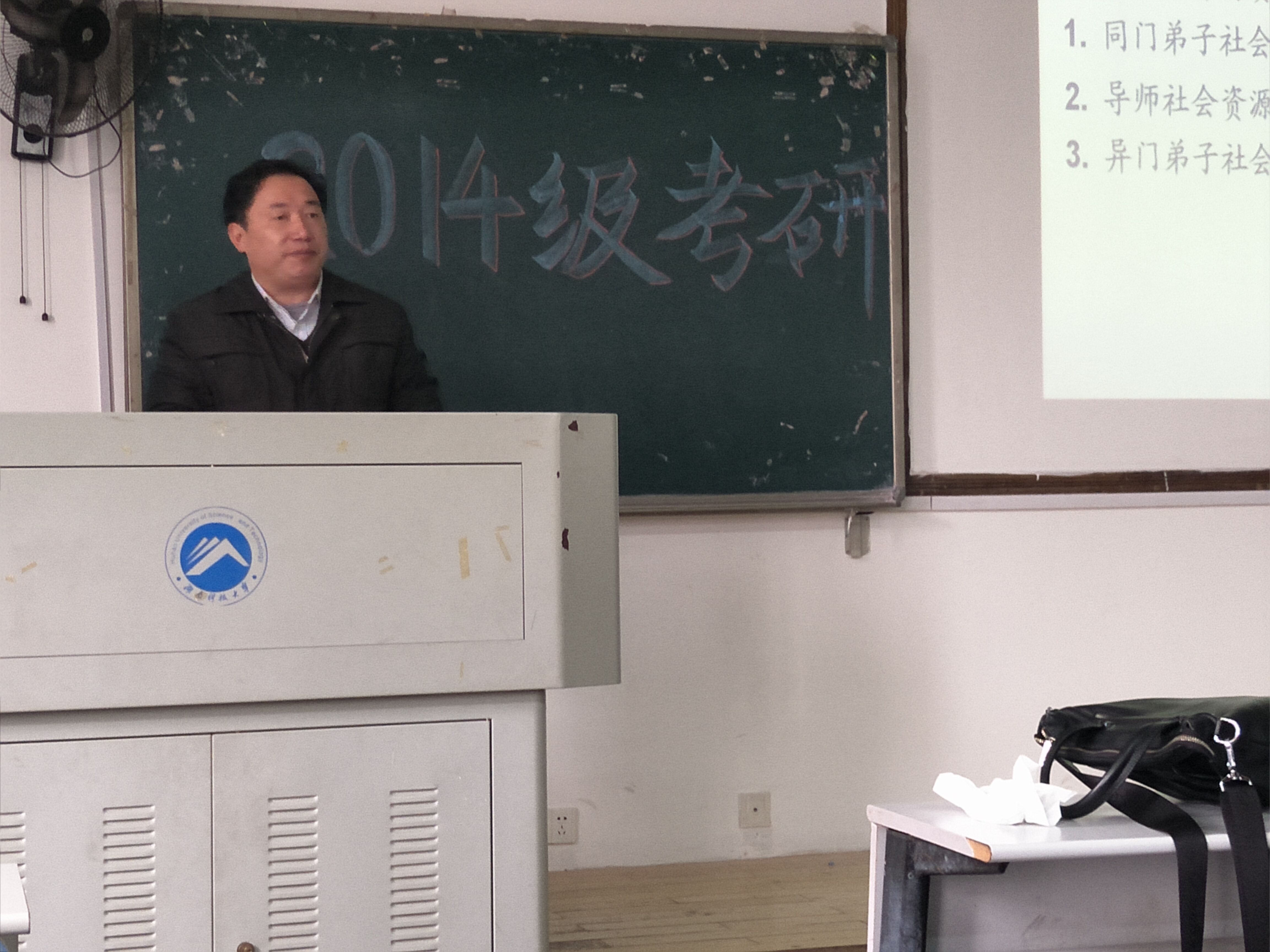 为使2014级员工能做好人生选择,找准人生方向,2016年12月28日上午十点,2014级考研动员大会于第八教学楼2-3准时开始。动员大会由公司党委副书记王伟清教授主讲,院学工办练素华老师也出席了此次动员会。