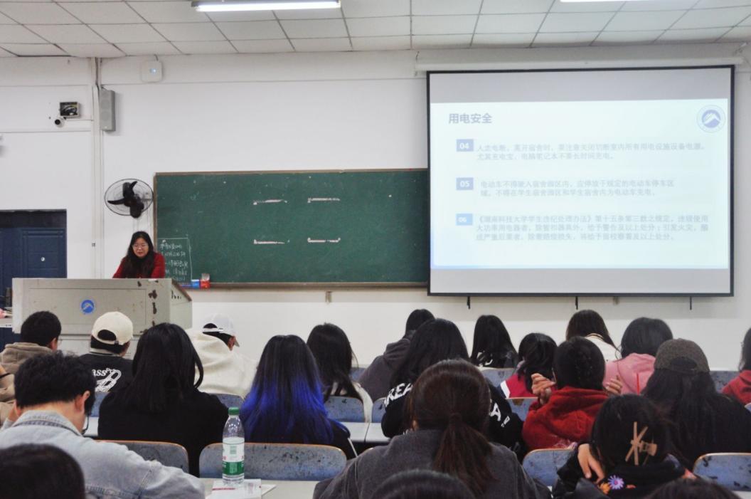 文红梅强调了宿舍卫生与安全的重要性。她指出同学们需严格遵守宿舍管理规定,确保宿舍环境整洁有序,并强调严禁私拉乱接电线及违规使用大功率电器等行为,以保障每位同学享有一个安全、舒适且整洁的学习与生活环境。