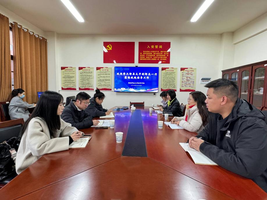 2月19日,校员工工作部副部长吴大平一行莅临公司,在敏行楼B301开展员工工作调研与指导会议。公司党委副书记文红梅及全体辅导员参与会议。