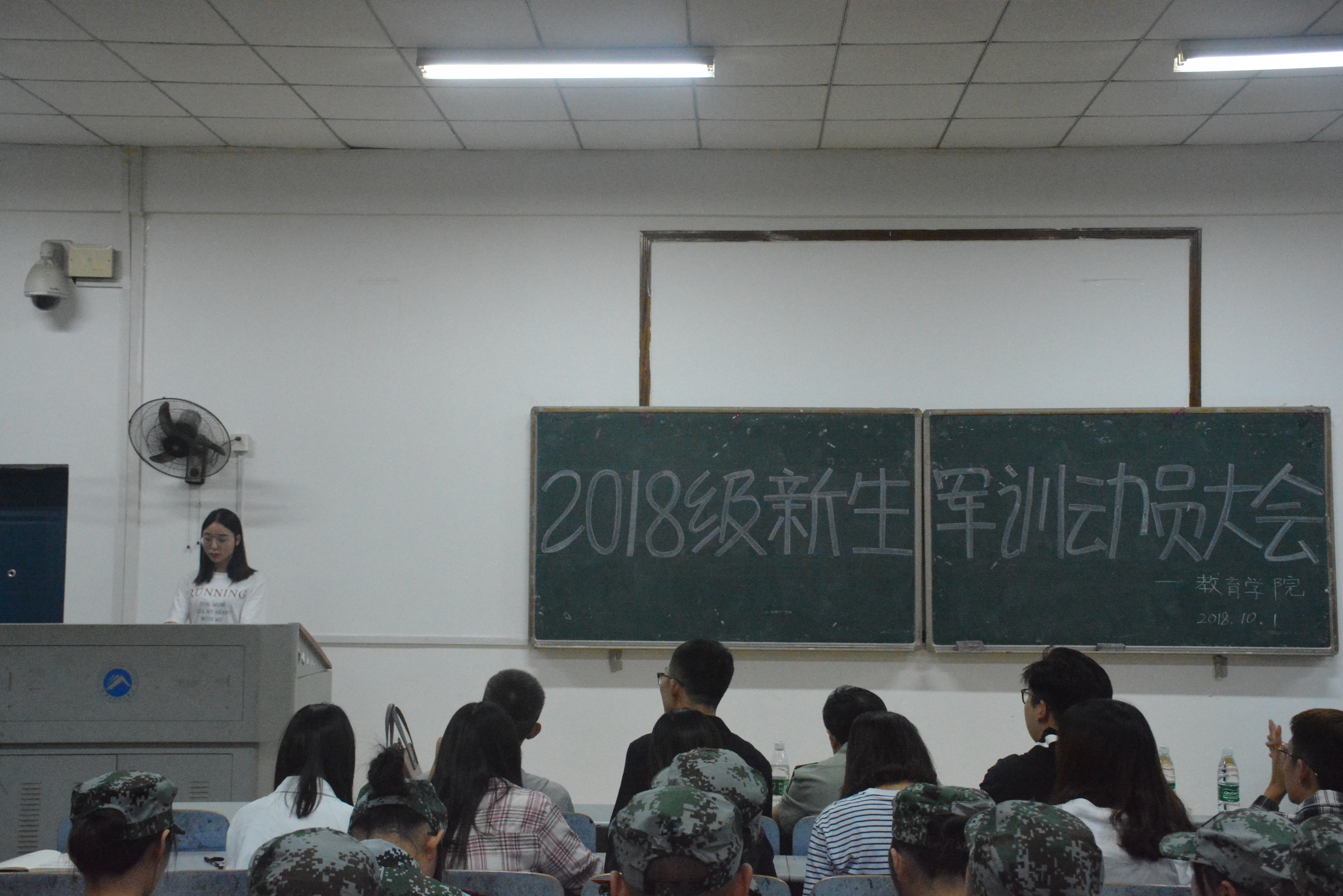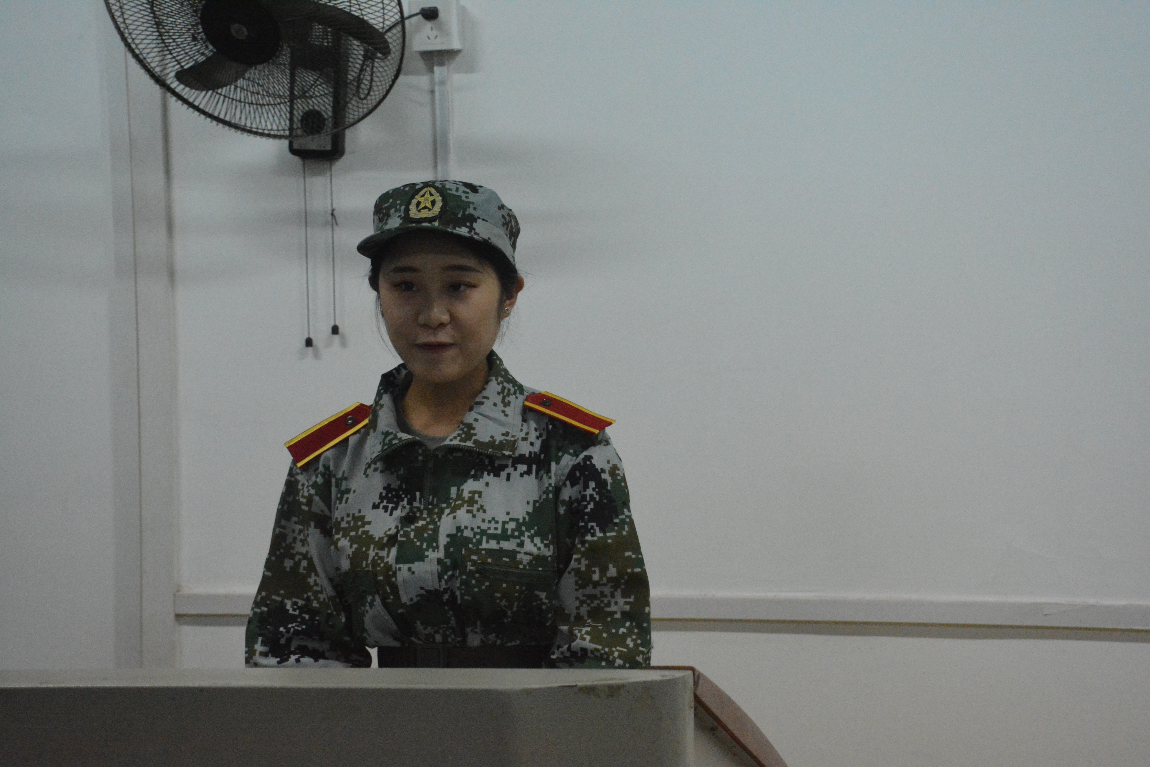 大会开始,首先新生代表李瑶代表全体新生向领导、教官、老师们承诺一定以最快的速度接受军训生活,并且坚决服从教官和组织安排,在军训中培养优良品德,努力为集体争光。接着,由体育部部长曾嘉欣宣读军训注意事项,其中包括了军训时期的训练计划、请假规定、作息时间等等各个方面的内容,并着重强调了着装要求和考勤制度。接下来由新生辅导员练素华老师发言,她对本次军训提出了要求:要严格遵守军训纪律和作息时间,要有吃苦的准备和战胜困难的决心,同时注意饮食安全和财产安全,强调要树立集体主义精神,以饱满的精神状态投入军训,超越自我。