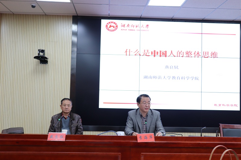 2018年11月16日下午,湖南师范大学教育科学公司博士生导师燕良轼教授做客“明湖教育论坛”,为公司师生带来题为“什么是中国人的整体思维”的学术报告。报告会由球盟会经理李海萍主持。