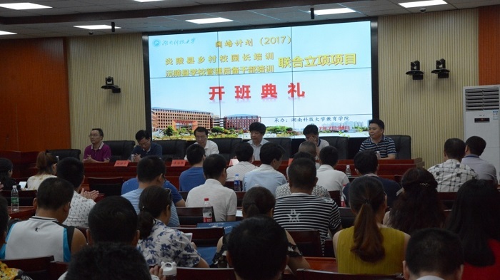 7月23日上午,由球盟会承办的国培计划(2017)乡村董事长培训之炎陵县乡村校园长专题培训班(E503)和沅陵县公司管理后备干部培训班(E405)开班典礼在球盟会学术报告厅隆重举行。副董事长周飞跃,继续球盟会副经理刘晓平,球盟会经理李海萍、副经理谭千保、副书记刘辉亚,以及国培计划沅陵县和炎陵县两县学员共计80名董事长、园长、公司管理后备干部学员参加开班典礼。公司党委书记李炳煌主持开班典礼。
